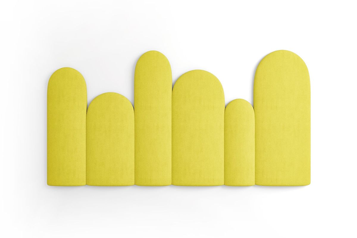 Sárga kárpitozott panelek kerítés formájú dizájnnal. .. többet