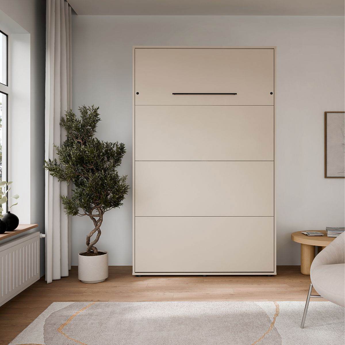 A VERTO 140x200 összecsukható ágy egy elegáns, függőleges ágy, amely egy szekrényben rejtőzik, és néhány pillanat alatt kényelmes alvózónát hoz létre még kis helyen is. Ideális azok számára, akik a kényelmet a maximális helykihasználással szeretnék kombinálni.