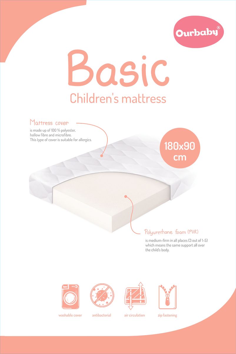 BASIC sorozat - Ourbaby® márkánk matracainak alapsorozata, mely alatt nem csak matracokat gyártunk. BASIC habszivacs matracokat kínálunk méretben minden korosztály számára. A PUR matrachab közepesen kemény. A BASIC gyerekmatracok a legjobb választás, ha minőségi matracot keresel elérhető áron.