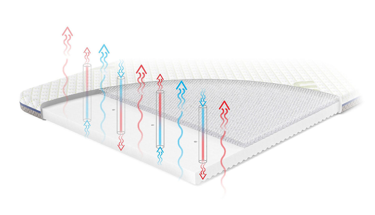 Ez az egyedülálló konstrukció lehetővé teszi a levegő szabad áramlását a matrac belsejében, biztosítva gyermekének a szabad légzést és hatékonyan csökkentve az izzadást. Ez jobb alvási higiéniát és kivételes hőkomfortot eredményez.