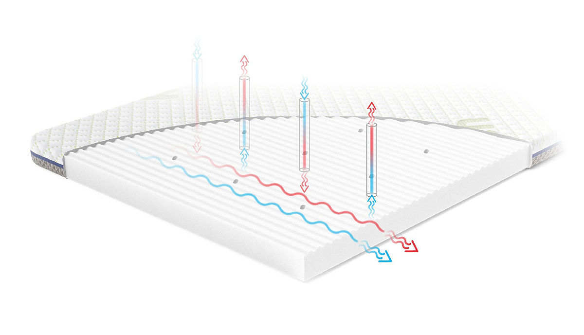A huzat hálója és a vertikális és horizontális csatornák teljesen integráltak - ennek köszönhetően kiterjedt háló jön létre, és a matrac lélegzik.
