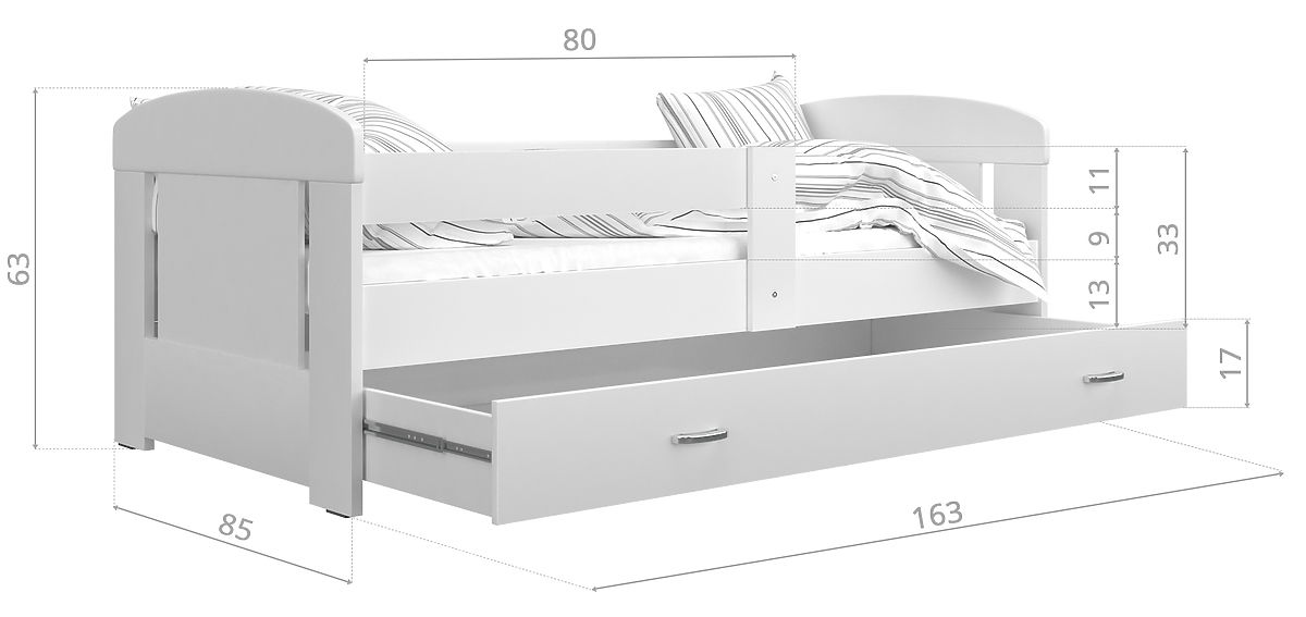 Matracok (160x80 cm, 180x80 cm, 200x80 cm) nem szerepelnek az ágyban;