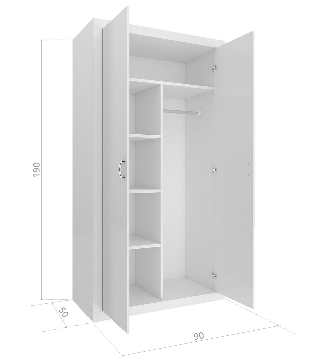 - 90x50x190 cm