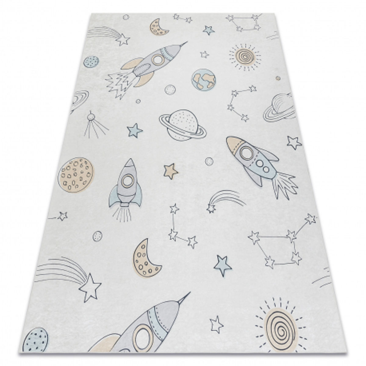 Banaby.hu » Gyerekbútor / Gyerekszoba szőnyegek / Gyerek szőnyegek / BAMBINO 1278 gyerekeknek szánt csúszásmentes mosószőnyeg Űrrakéta - krém