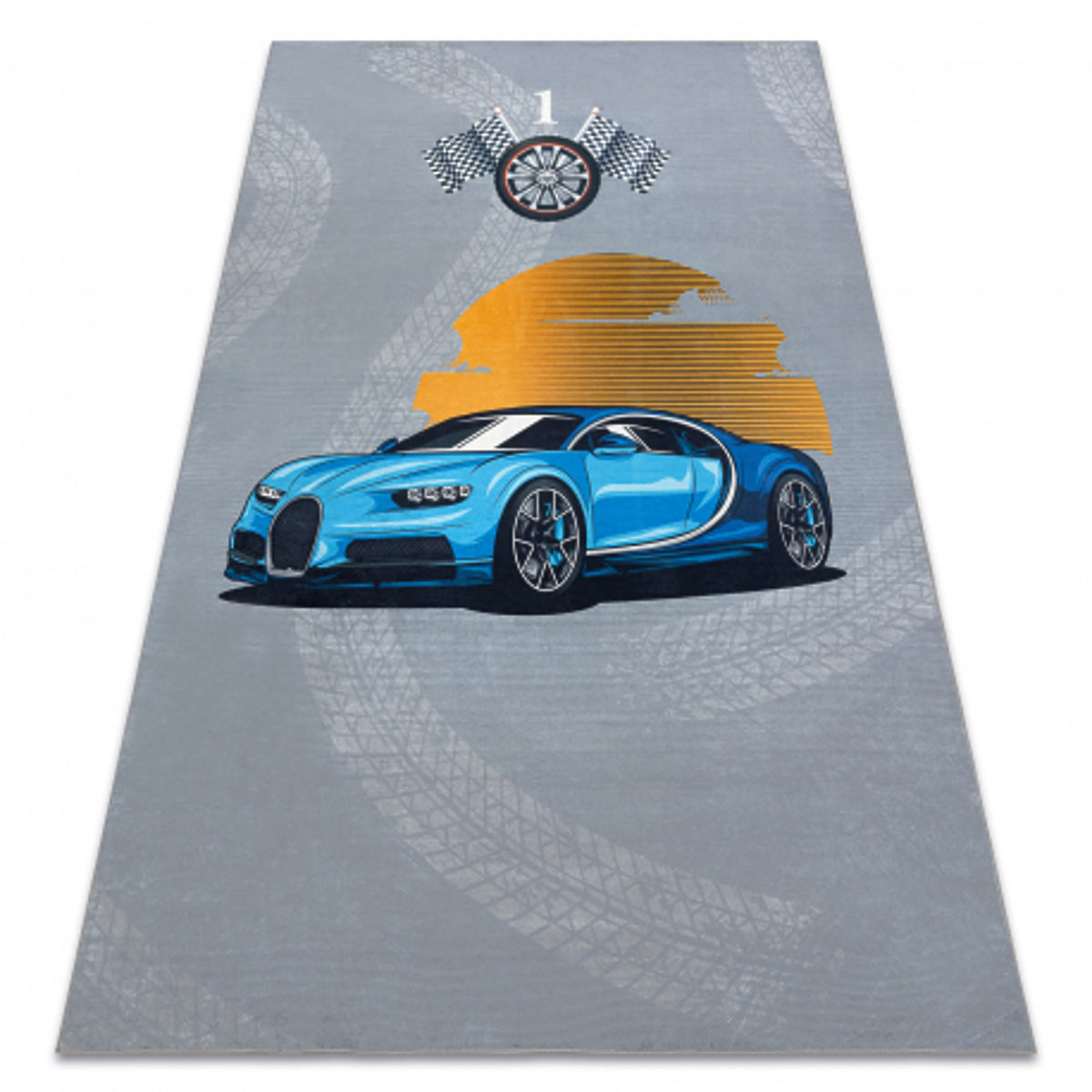 Banaby.hu » Gyerekbútor / Gyerekszoba szőnyegek / Gyerek szőnyegek / BAMBINO 41730 mosó szőnyeg Autó, verseny gyerekeknek csúszásmentes - szürke / kék