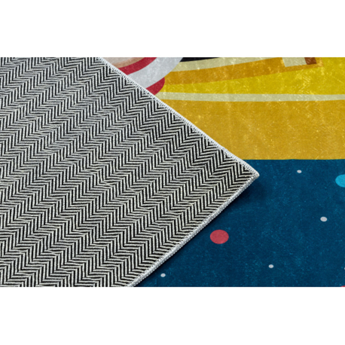 Hozzon űrkalandot a gyerekszobába a BAMBINO téglalap alakú szőnyeggel, rakéta és bolygók motívummal. A kék és barna színkombináció játékos és egyben otthonos megjelenést kölcsönöz a szobának. A szőnyeg puha és kellemes tapintású, biztonságos a csúszásmentes alsó részének köszönhetően, és könnyen karbantartható – mosógépben mosható. Tökéletes játszószobába, gyerekszobába vagy kreatív sarokba, amely támogatja a gyerekek fantáziáját.