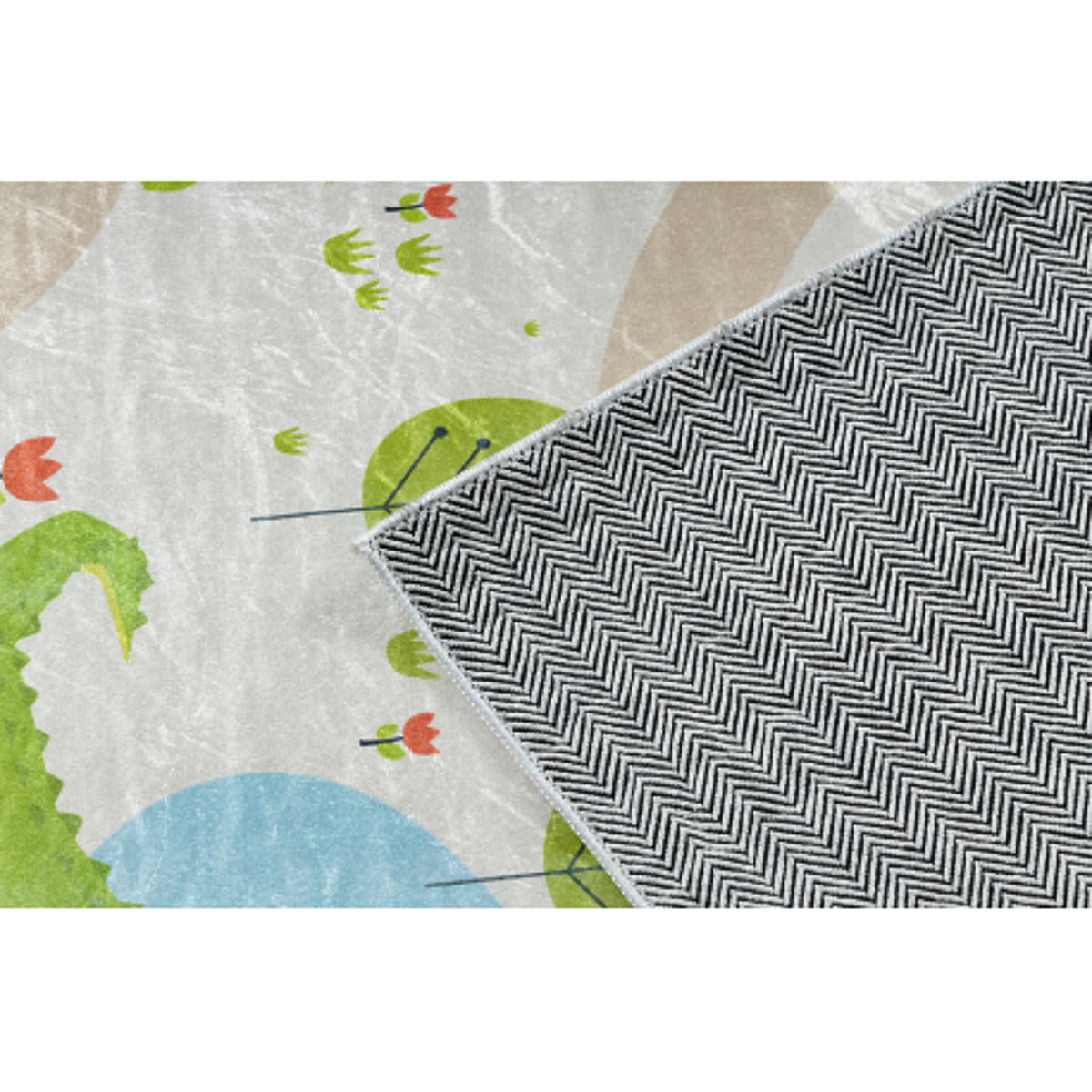 Hozzon létre gyermekének vidám és inspiráló helyet, tele kalandokkal a BAMBINO 50230 téglalap alakú mosókendővel, amely ötvözi az állatkert és a városi utcák motívumát. A bézs és zöld színkombináció kellemes, játékos megjelenést kölcsönöz a szőnyegnek, amely tökéletesen illik a gyerekszobába, játszószobába vagy óvodába. A vidám állat- és útillusztrációk ösztönzik a fantáziát és kreatív játékra hívják a gyerekeket. A szőnyeg 100% poliészterből készült, amely puha tapintású, tartós és nagyon könnyen karbantartható. Az 5 mm vastagság kényelmes lépést biztosít, míg a 0,70 kg/m² súly könnyűvé és könnyen mozgathatóvá teszi a szőnyeget. Nagy előnye a mosógépben moshatóság, amely megkönnyíti a higiénikus tisztaság fenntartását. A csúszásmentes alsó réteg növeli a játék biztonságát és megakadályozza a szőnyeg elmozdulását a padlón.