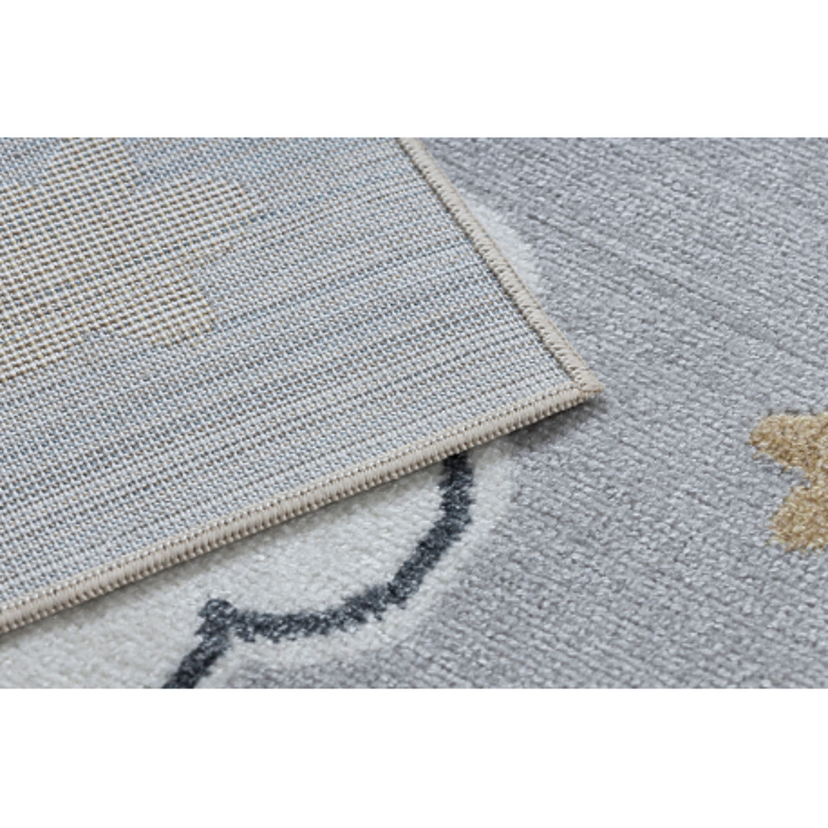 A BONO 8437 Felhők és égbolt téglalap alakú szőnyeg finomságot, nyugalmat és harmóniát hoz a gyerekszobába. A világosszürke alap krémszínű részletekkel nyugtató és elegáns megjelenést kölcsönöz, amely könnyen illeszkedik a modern és klasszikus enteriőrökbe egyaránt.
