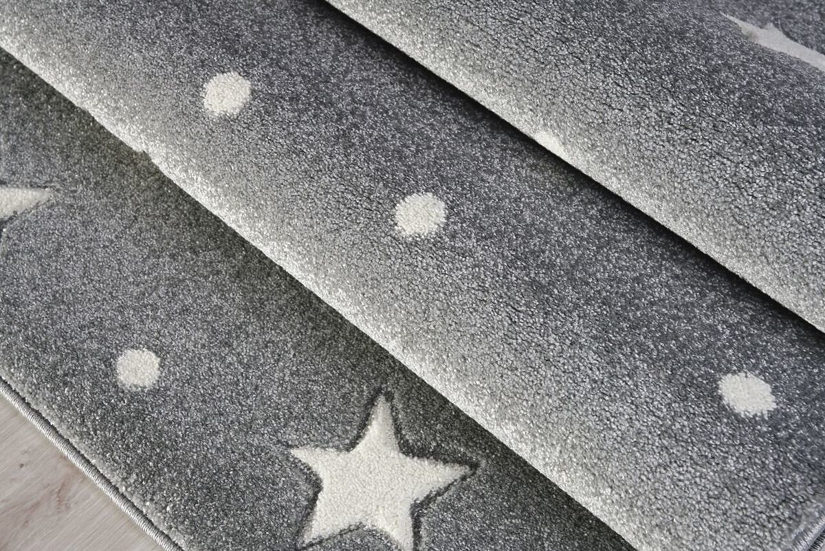 Luxus szőnyeg ezüst-szürke színben fehér csillagokkal és pöttyökkel. Ezt a német LIVONE cég szőnyegét szeretni fogja a család minden tagja.