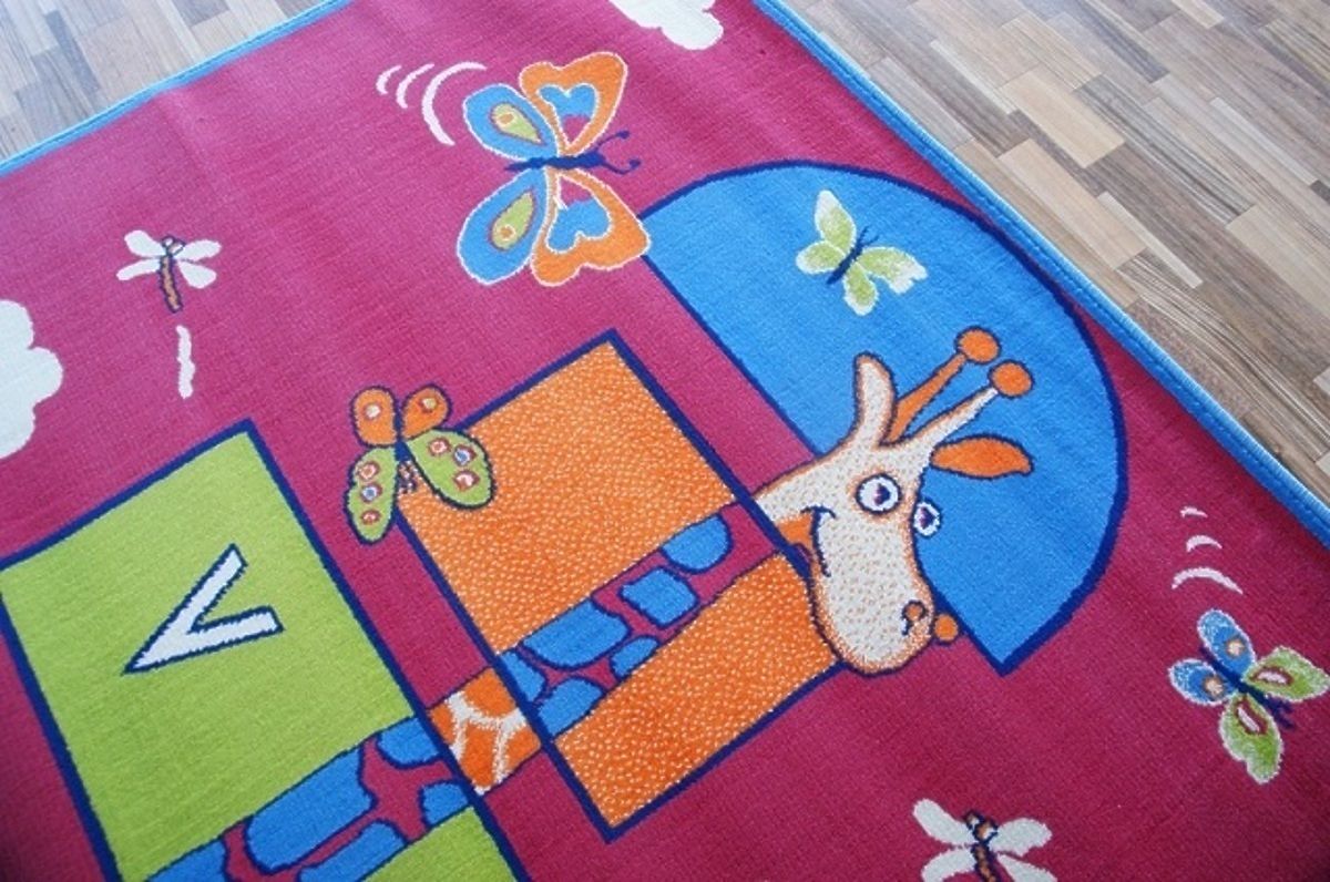Gyönyörű rózsaszín gyerek szőnyeg zsiráf mintával. .. többet
