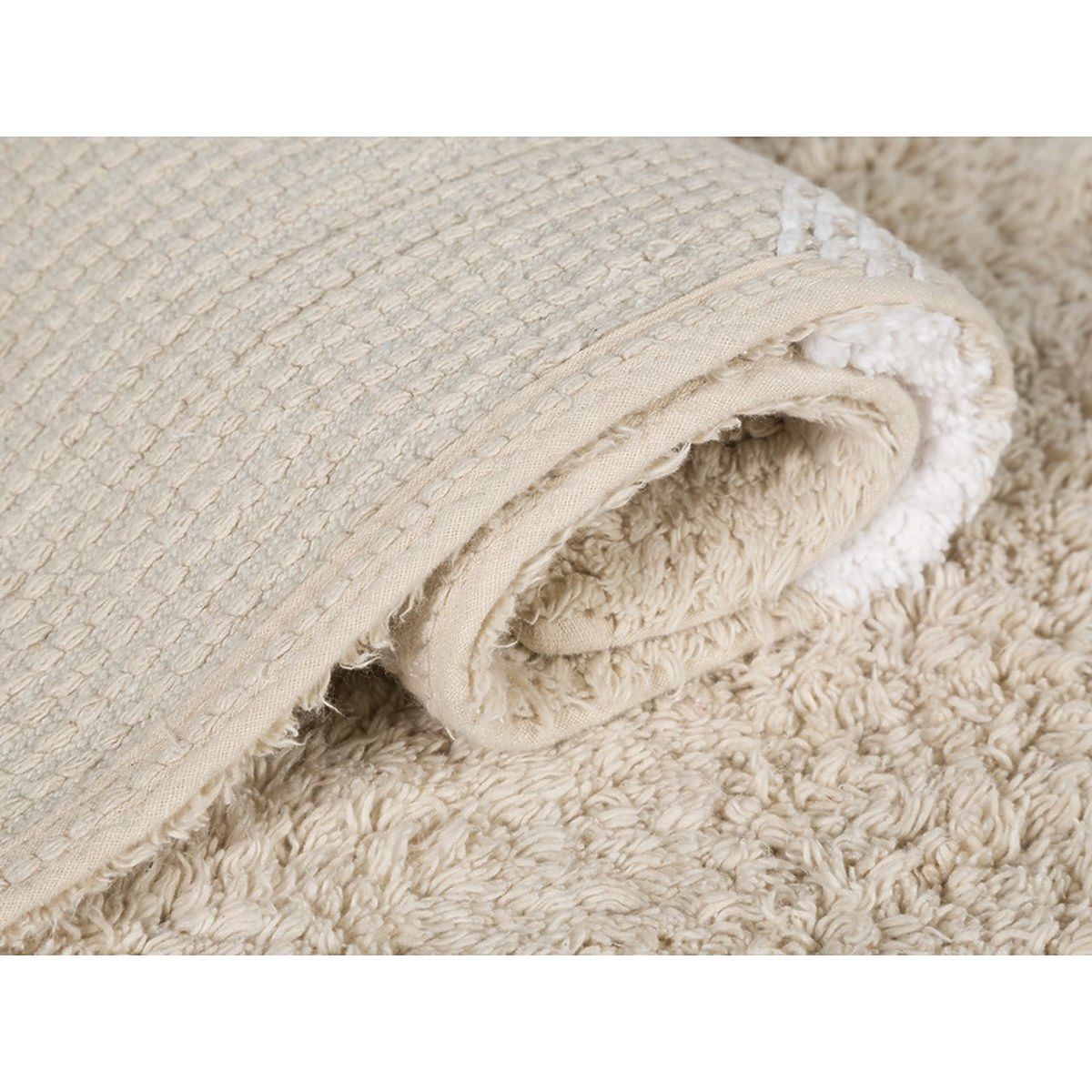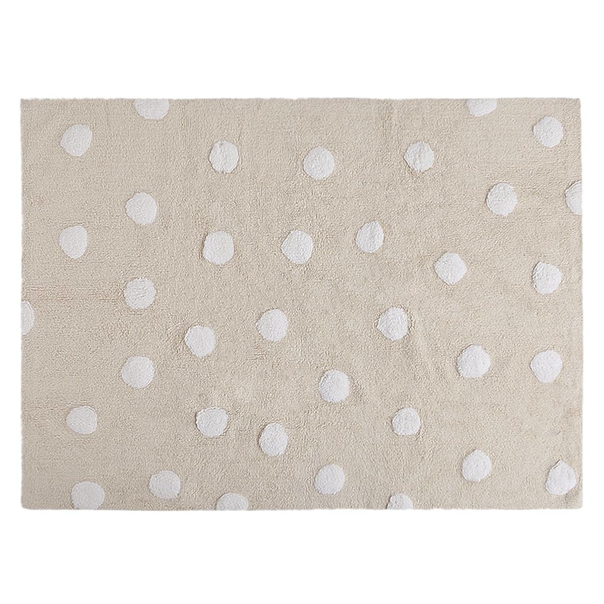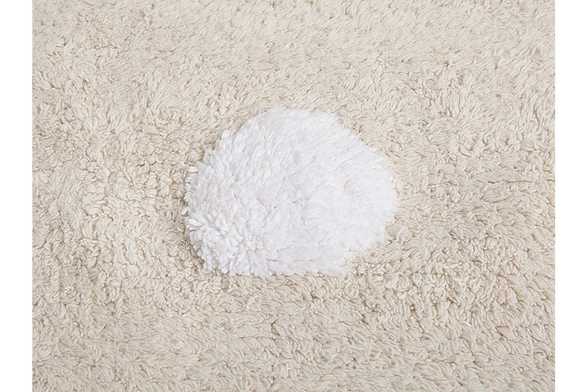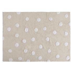 A kézzel szövött pöttyös szőnyeg fehér pöttyösekkel, bézs alapon remekül mutat, és könnyen kombinálható bármely gyermekszoba belső terével. 100% pamut.