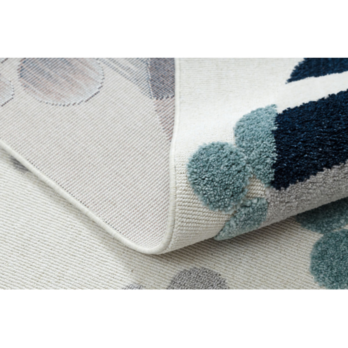 A szőnyeg strukturált felülettel és rojtokkal rendelkezik, ami támogatja a tapintási és vizuális élményt, valamint serkenti a gyerekek kreativitását és kíváncsiságát. A kiváló minőségű poliészter fonal használatának köszönhetően puha, kellemes tapintású és könnyen karbantartható. A szőnyeg vastagsága 8 mm és 16 mm között változik, ami kényelmet biztosít játék és pihenés közben is. A súly a szőnyeg mintájától függően 2,0–2,50 kg/m² között mozog.