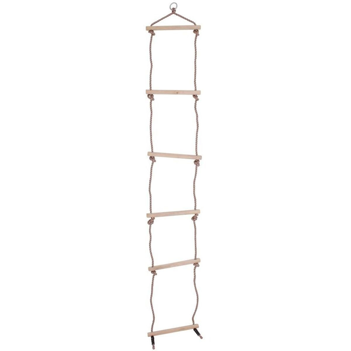 Ez a strapabíró, hagyományos kötéllétra ideális a gyermekek egyensúlyának és mászási készségeinek fejlesztéséhez. Kültéren és beltéren is használható, és erős fa válaszfalakkal rendelkezik. Kiváló szórakozáshoz és aktív játékhoz. Kiváló minőségű, felelősségteljes forrásból származó anyagokból készült. Megfelel a jelenlegi európai biztonsági szabványoknak. Javasoljuk, hogy minden életkorú gyermeket egy felelős felnőtt felügyeljen a termék használatakor. Súlyhatár: 60 kg. Főbb jellemzők: a válaszfalakat tömör kötél köti össze, 60 kg teherbírással
