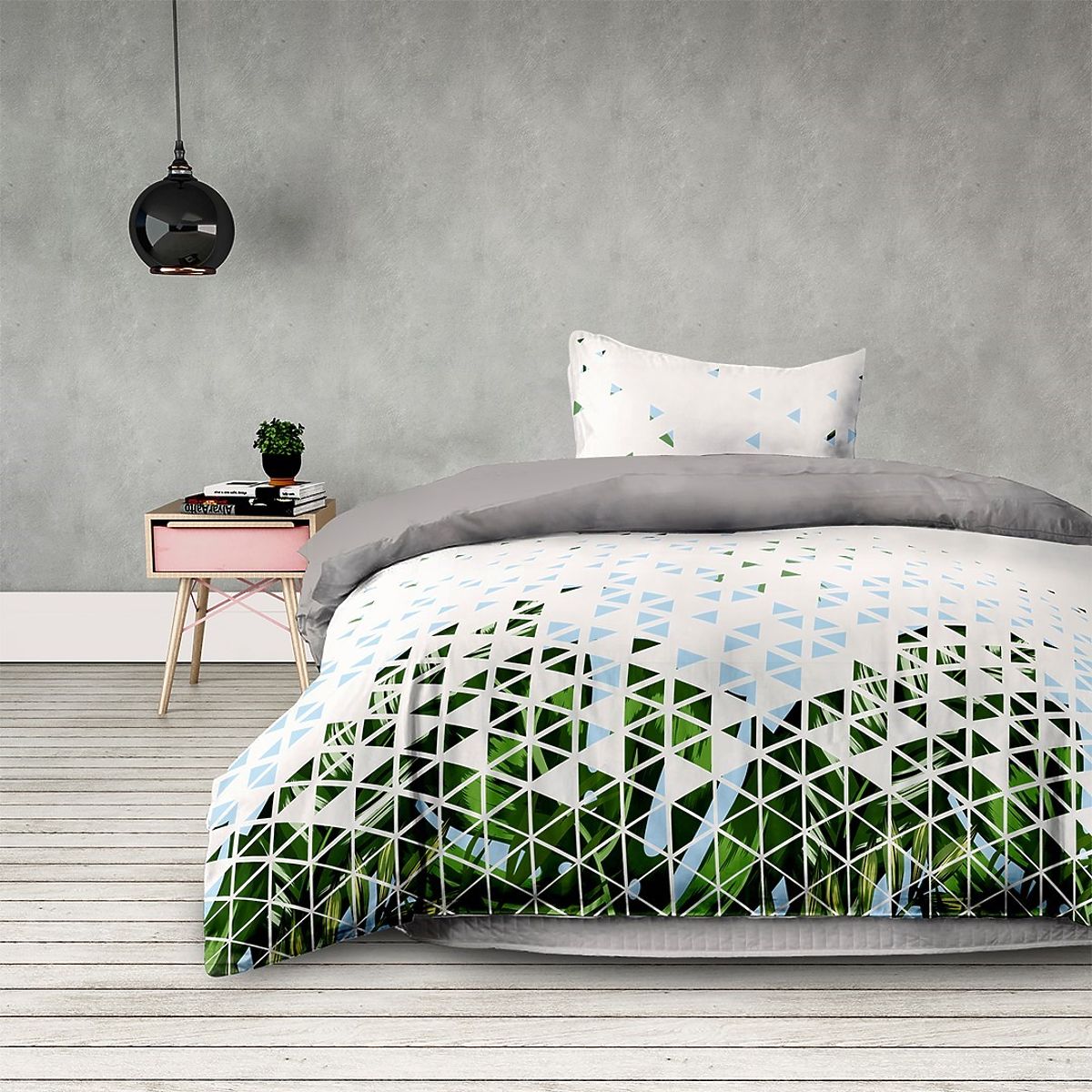 Banaby.hu   »   Bútor   /   Hálószoba   /   Ágyneműk   /   BASIC ágynemű zöld színben, nyomtatott növényi motívummal, modern stílusban, 155x220*2+80x80*2 Ameli