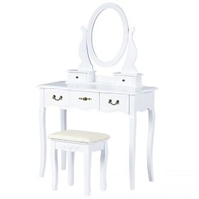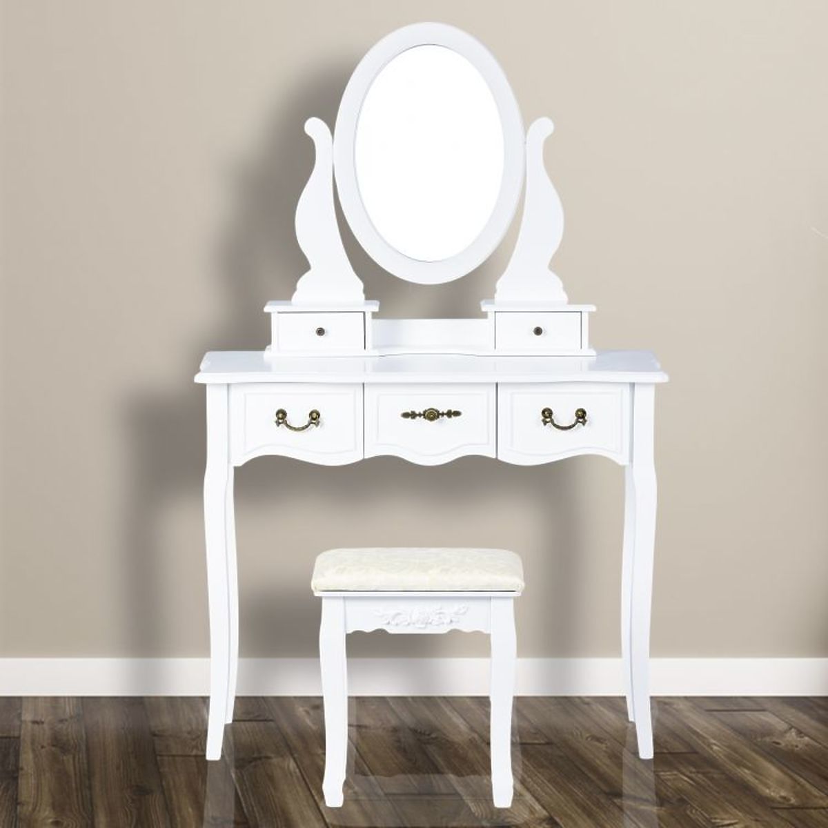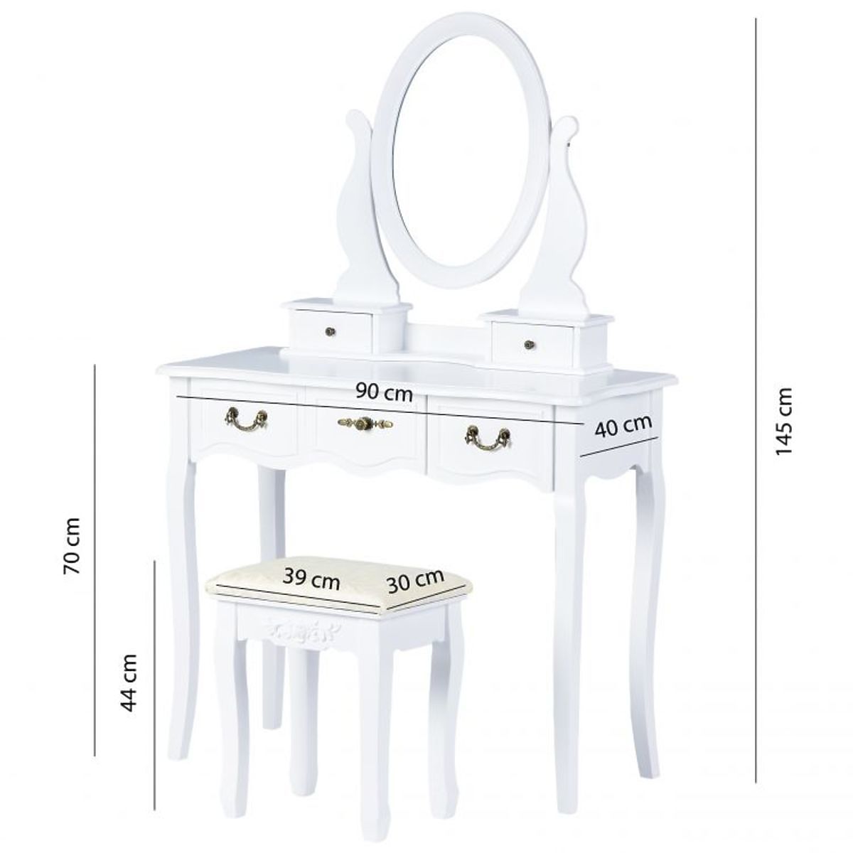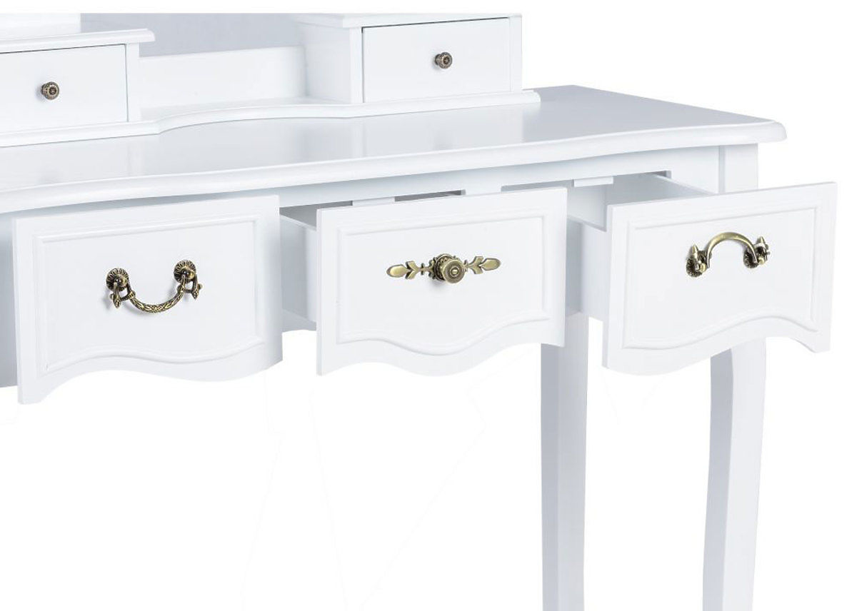 A fehér Alva fésülködőasztal tükörrel elegáns tárolója lesz kozmetikumoknak, ékszereknek és egyéb kiegészítőknek. A kárpitozott széknek és öt tágas fióknak köszönhetően a sminkje nagyon kényelmes és stílusos viselet lesz.