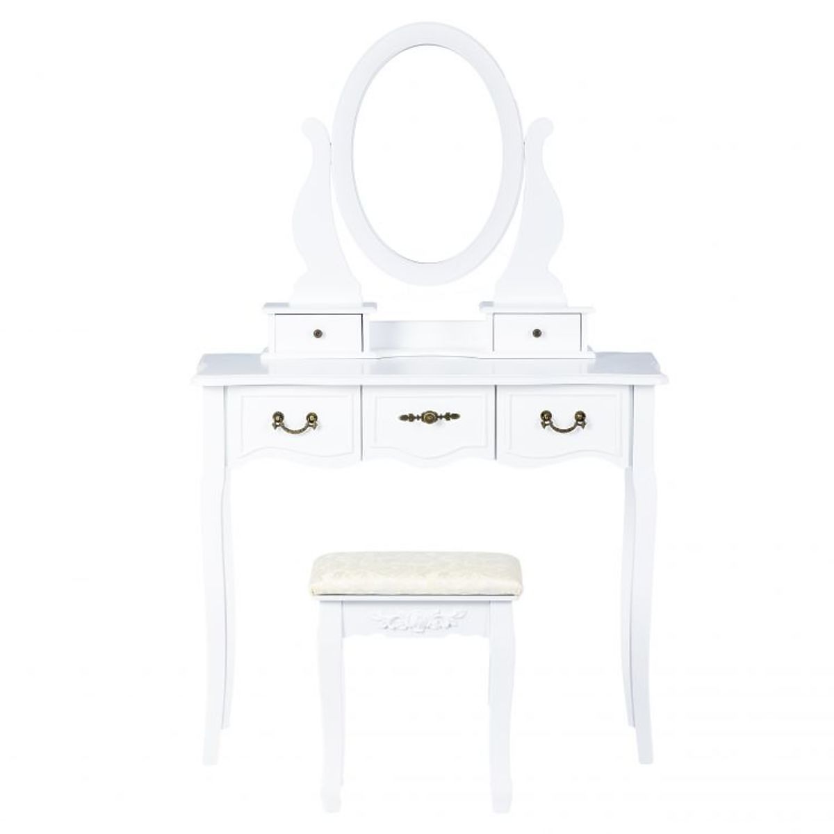 A fehér Alva fésülködőasztal tükörrel elegáns tárolója lesz kozmetikumoknak, ékszereknek és egyéb kiegészítőknek. A kárpitozott széknek és öt tágas fióknak .. többet