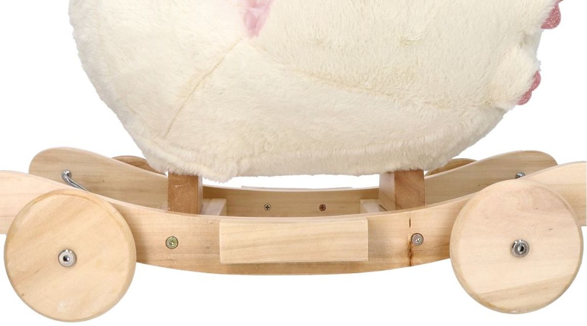 A hintaló járgánnyá alakítása nagyon egyszerű, a kerekek sín alá hajtásával és az öv bekapcsolásával. Ennek köszönhetően a gyermek mozoghat, vagy magával húzhatja a hintalovát.