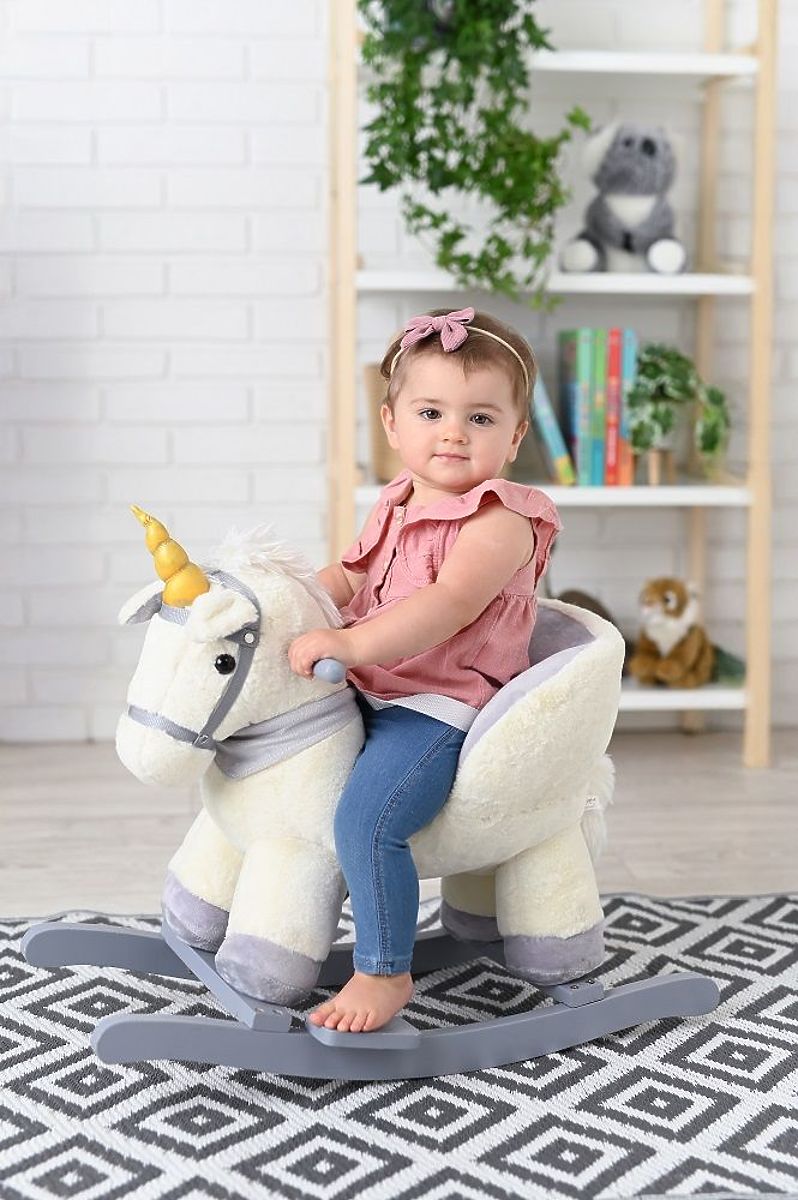 A barátságos hintaló unikornis alig várja új barátját. Gyermeke kényelmesen elhelyezkedhet a plüss székecskében, hogy elinduljon egy távoli kalandra az édes kis lovacskával :)