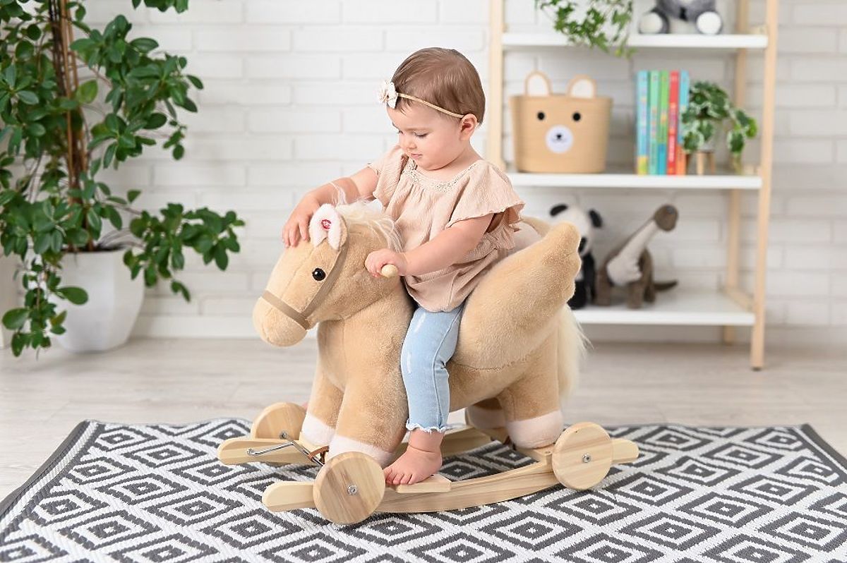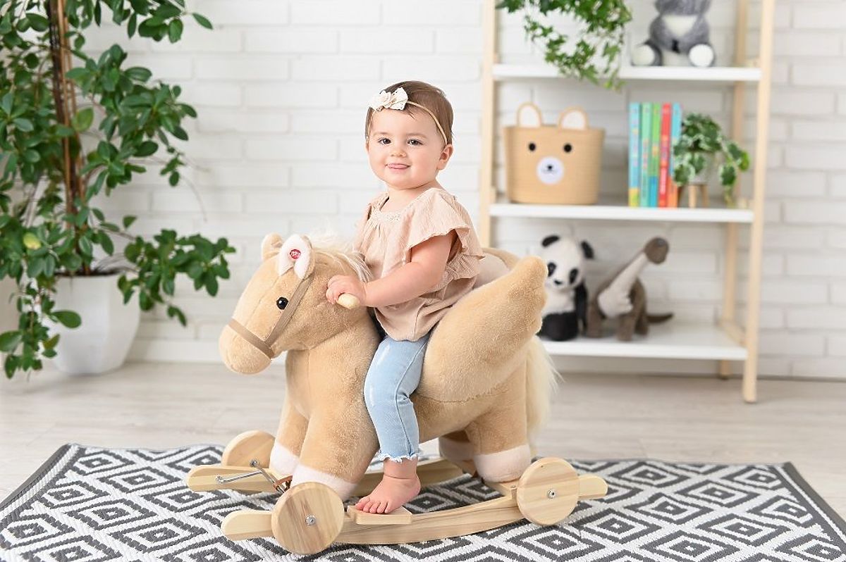 Hintázó Pegazus kerekekkel új, aranyos változatban. Finom szín, puha és kellemes tapintású, kényelmes és biztonságos - ezek csak néhány előnye. Biztosan gyermeke számos fantasztikus játékának társa lesz.