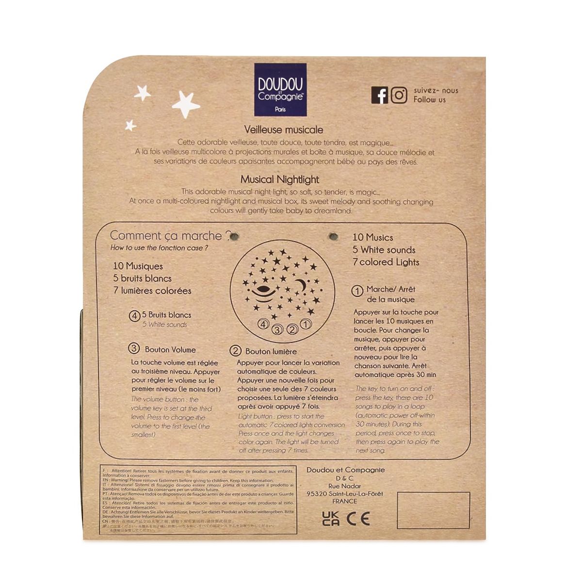 Ki nem alszik még itt? Ezzel az aranyos nyuszival a baba altatása gyerekjáték lesz. A puha anyagból készült nyuszi ölelgetésre alkalmas, és a hasán található egy zenélő doboz, amely a világűrt vetíti ki 7 színben. 10 lágy dallamot és 5 megnyugtató hangot játszik le, amelyek elringatják a babát, és támogatják a pihenését és a minőségi alvást. 4 gomb segítségével beállítható a hangerő és a különböző lejátszási módok, valamint az egyes színmódok. Választható automatikus mód, amikor a dallamok ismétlődnek, vagy kiválasztható egy konkrét szám. Ugyanígy beállítható az automatikus fény mód is, amikor a színek folyamatosan változnak, vagy kiválasztható a kedvenc szín. A vizuális és hallási stimuláció segíti a gyermek érzékszervi fejlődését. Ez a vetítéssel ellátott zenélő doboz gyönyörű ajándék minden gyermek számára már születéstől kezdve. Karbantartás: A nyuszit 30°-os fürdőben mossa (mosás előtt vegye ki a zenélő szerkezetet). Természetesen vagy alacsony hőmérsékleten szárítsa. Főbb jellemzők: plüss játék és vetítéssel ellátott zenélő doboz egyben, a zenélő doboz könnyen karbantarthatóan eltávolítható, vizuális és érzékszervi stimuláció, puha plüss, megfelel az európai CE szabványoknak, ajándéknak vagy a gyerekszoba kiegészítőjének is alkalmas, 3 AAA/R03 elem szükséges a működéshez (nem tartozék), születéstől kezdve alkalmas.