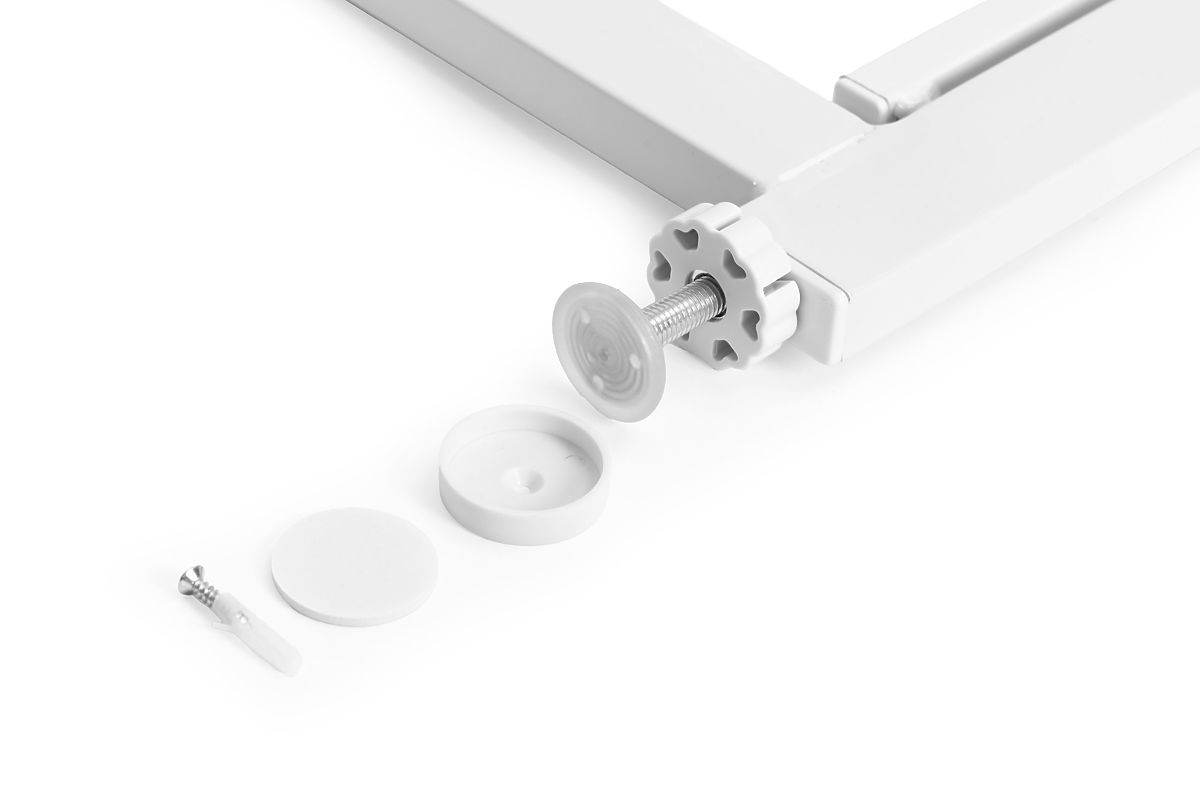 EGYSZERŰ TELEPÍTÉSA korlát telepítése rendkívül egyszerű, és nem igényel semmilyen szerszámot vagy lyukak fúrását a falakba vagy ajtókeretekbe. A 4 pontos nyomásos rögzítési rendszernek köszönhetően a korlát stabilan tartja a helyét anélkül, hogy károsítaná a felületeket. Emellett a mellékelt védőpárnák védik a falakat és a padlót az esetleges karcolásoktól, biztosítva a helyiségek esztétikus megjelenését.