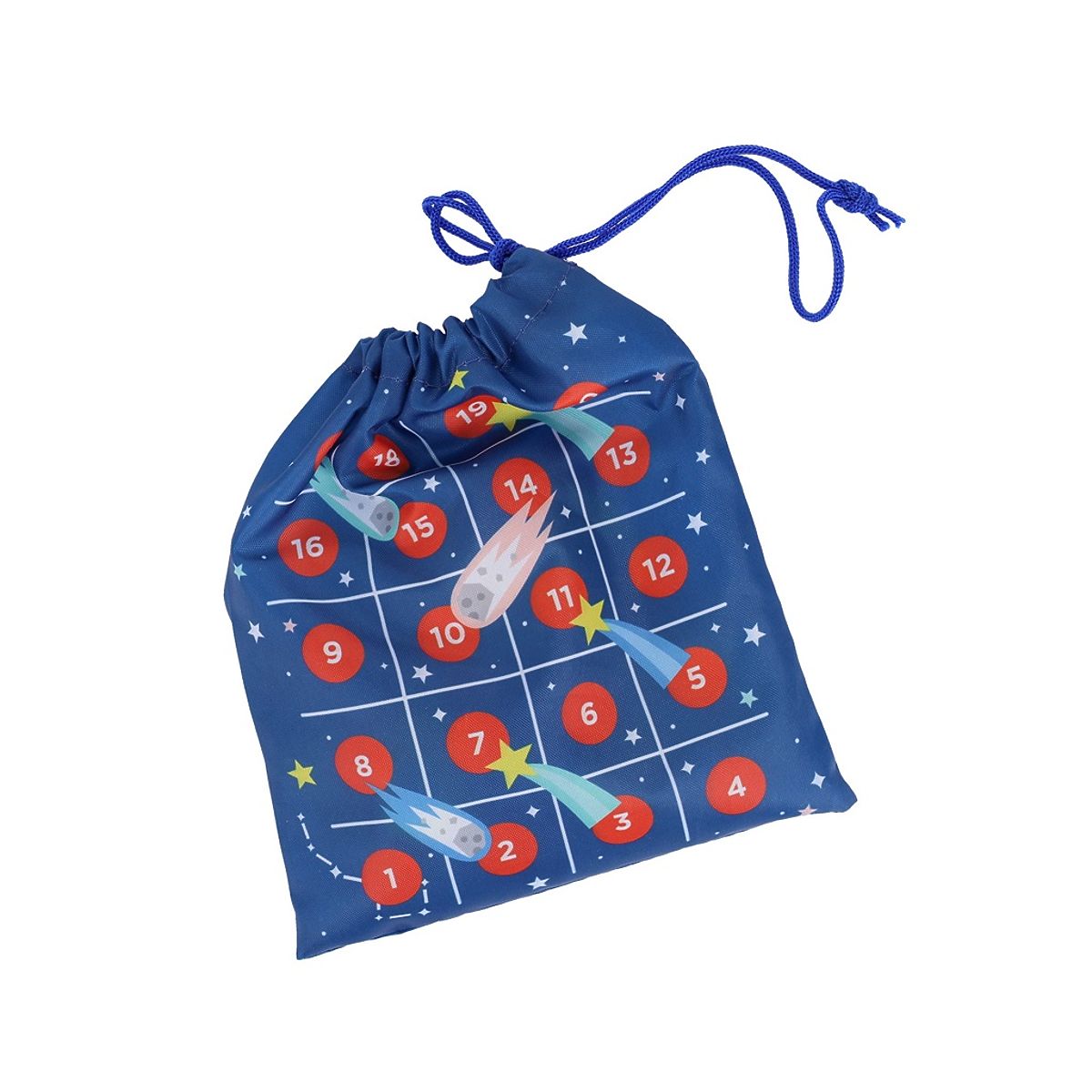 Utazzon át a galaxisokon két népszerű játékkal! A 2 az 1-ben Utazós játék Űrkaland a klasszikus tic-tac-toe és a kígyók és létrák játékok változata. A játék tartalmaz 10 darab fa figurát rakéták és bolygók formájában, egy dobókockát és játékszabályokat. A játékosok bolygókat és rakétákat mozgatnak a praktikus, összehúzható zsinóros, űr témájú utazótáskára nyomtatott rácsokon. Ha a játékos üstökös képpel ellátott mezőre lép, egy sorral feljebb lép, míg a hulló meteorit mező visszalépteti egy sorral. A játékok nagyszerű módjai annak, hogy megtanítsák a gyerekeket türelemre, koncentrációra, más játékosokkal való kommunikációra, a győzelemre, de a vereségre is. A fiatalabb gyerekek számára a figurák mozgatása a játéktáblán kiváló gyakorlat a kéz-szem koordináció, ügyesség, valamint a színek és formák felismerése terén. A játék minden része újrahasznosított anyagokból készült. A vászonzsák újrahasznosított PET-ből, a zsinór újrahasznosított PP-ből, a fa figurák pedig újrahasznosított fából készültek. Főbb jellemzők: 2 játék praktikus utazó csomagolásban, tic-tac-toe és kígyók és létrák népszerű játékok változata, türelemre, koncentrációra, győzelemre és vereségre tanít, fejleszti a kéz-szem koordinációt, támogatja a színek és formák felismerését, 2 játékos számára, 4 éves kortól ajánlott