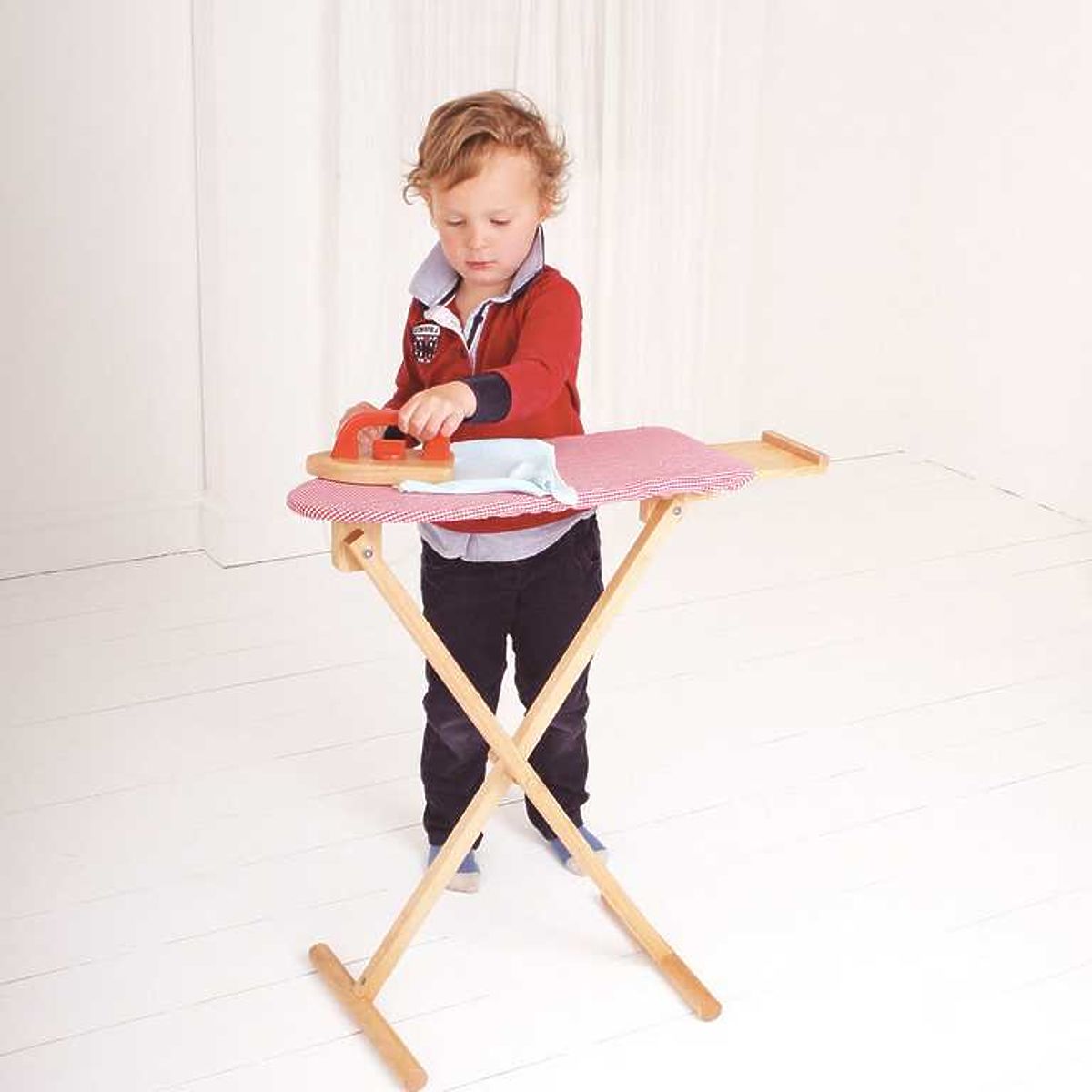 A legkisebbek biztosan lelkesedni fognak ezért a világos és masszív fa vasalódeszkáért és fa vasalóért. Ideális a babaruhák vasalásához, vagy hogy segítsenek anyának vagy apának a vasalásban. Remek kiegészítő a fa háztartási termékeinkhez. Magas minőségű, felelősségteljesen beszerzett anyagokból készült. Megfelel a jelenlegi európai biztonsági előírásoknak. Főbb jellemzők: tartalmaz egy textillel bevont fa vasalódeszkát és egy fa vasalót, támogatja a kreativitást, ügyességet és a valósághű játékot.