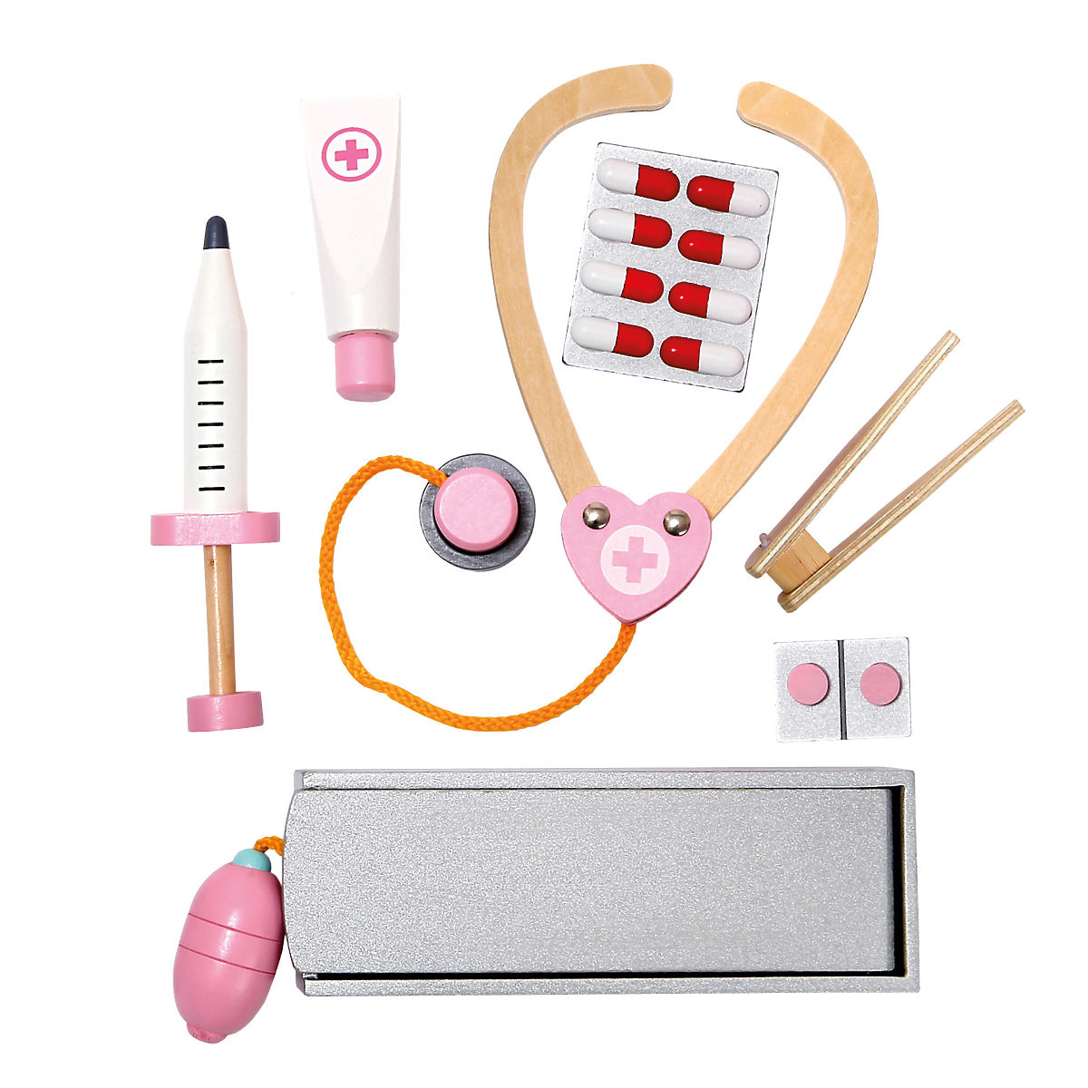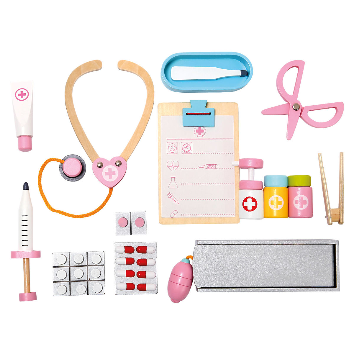 Fa orvosi bőrönd kis orvosoknak. Ideális játékhoz, amely hosszú ideig leköti a gyerekeket. Felfedezhetik a felnőttek világát és közben rengeteg szórakozásban lehet részük. A gyerekek könnyedén kinyitják a bőröndöt, kiveszik belőle a szükséges orvosi eszközöket, és a játék végeztével újra összerakják. A kiterjedt, 16 darabos kiegészítő jól rögzített széles gumipántokkal. Játékos formában fejlesztik nyelvi készségeiket, finommotorikájukat és támogatják képzelőerejüket. A gyerekek szórakozása segít csökkenteni az orvoslátogatástól való félelmet és aggodalmat. Figyelmeztetés: 3 év alatti gyermekek csak felnőtt felügyelete mellett használhatják. Főbb jellemzők: kiterjedt 16 darabos kiegészítő, a gyerekek játék közben fejlesztik finommotorikájukat, támogatják képzelőerejüket, segít csökkenteni az orvoslátogatástól való félelmet, 3 éves kortól ajánlott.