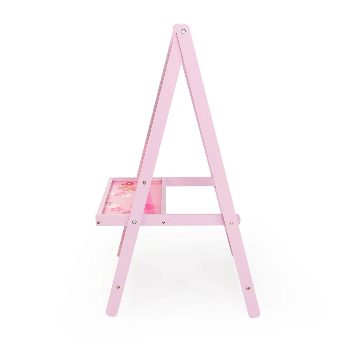 Egy népszerű német gyártótól származó álló tábla gyönyörű lepkés mintával. Az egyik oldala felülete olyan mint a klasszikus iskola tábla, ezért ideális írásra és rajzolásra krétával. A tábla tartozéka egy praktikus polc például krétákra. A tábla könnyen hordozható és tárolható a hajtogató mechanizmusnak köszönhetően.
