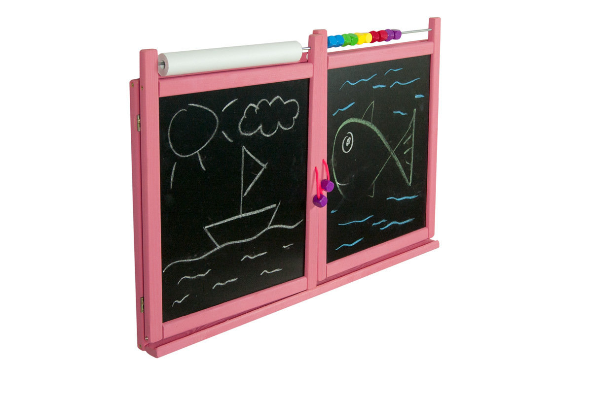 Rózsaszínű fából készült. A tábla egyik oldalán mágneses, a másikon kréta.