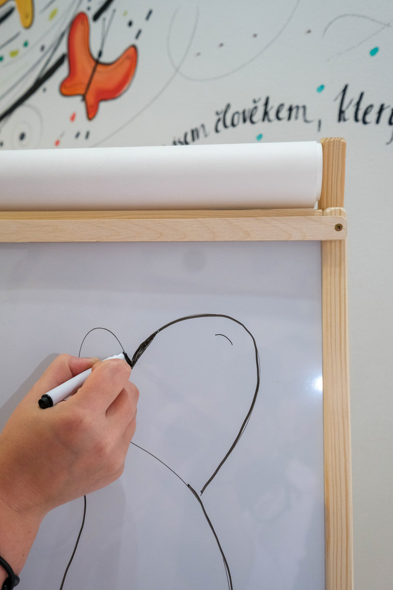 színes kréták, szivacs, fekete marker és cserélhető papírtekercs (20 m).
