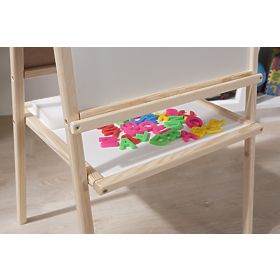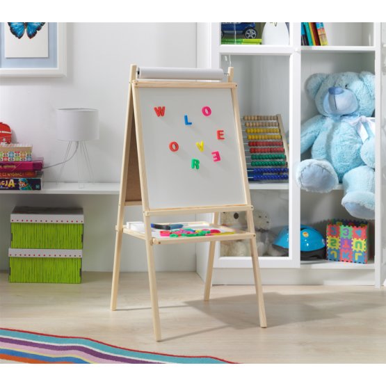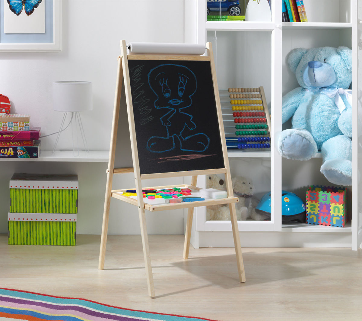 A minőségi anyagokból készült, természetes keretezésű tábla bármely gyerekszobába alkalmas. Nemcsak tökéletes gyerekjáték, hanem remek eszköz a gyermek tanításához, fejlesztéséhez is. A tábla használatával nem csak az írást vagy a számolást, hanem a kreatív gondolkodást is fejlesztheted. A természetes gyermektábla kétoldalas. Egyik oldalán iskolai táblák felületét kínálja, amelyre krétával rajzolhat, a másik oldalon mágneses.
