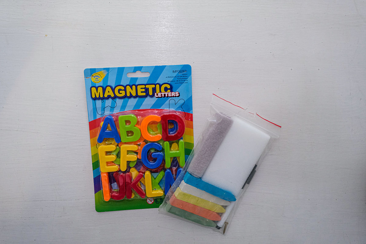 Megjegyzés: A táblán lévő mágneseket és a marker letörlésére szolgáló kendőt a csomag nem tartalmazza.
