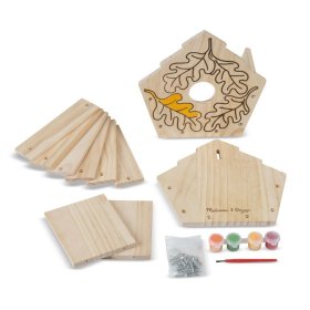 A készlet színeket tartalmaz, amelyekkel az összeszerelés előtt vagy után díszítheti a fülkét. Az elülső oldalon van egy kész minta a levelek színezésére. A madárházat a gyermek fantáziája szerint díszítheti, így minden madárház eredeti és egyedi lesz.