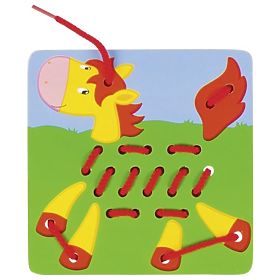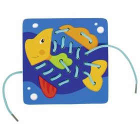 Mindegyik falapon vannak lyukak, amelyeken keresztül a gyermek befűzheti a cipőfűzőt. A színes fatáblák gyerekszoba díszeként is használhatók.
