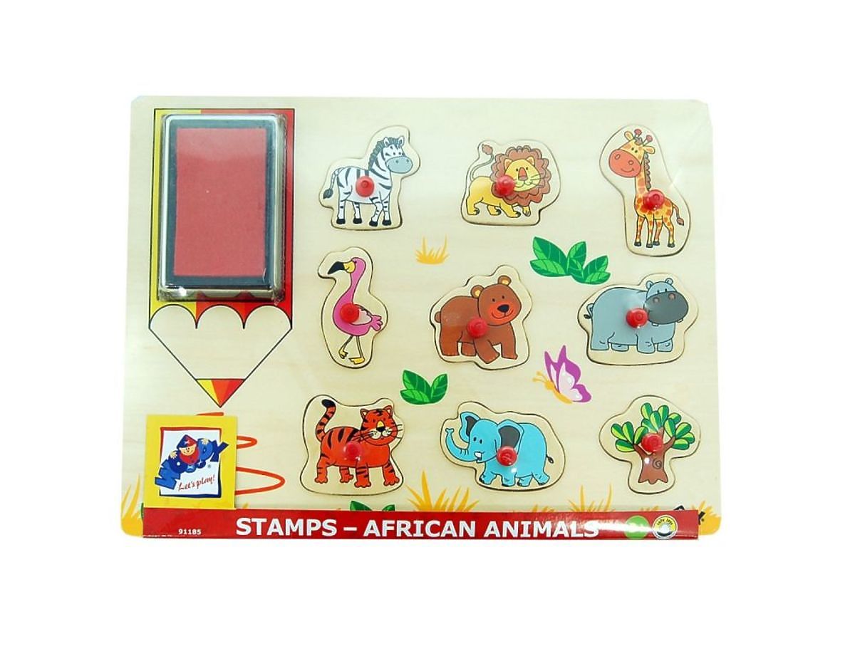 Gyermeke szereti a kirakós játékokat és a bélyegzést is? Akkor biztosan tetszeni fog nekik ez a gyönyörű, egzotikus állatok motívumával díszített játék, amely bélyegek és rejtvények kombinációja . Minden állat alján van egy gumibélyegző, amelyhez közvetlenül a termék felületén talál egy színes betétet. A gyerekek kiszínezhetik a nyomtatott állatokat, hogy afrikai szavannát, állatkertet, cirkuszt készítsenek, vagy felhasználhatják a bélyegeket bármely más általuk választott témára.