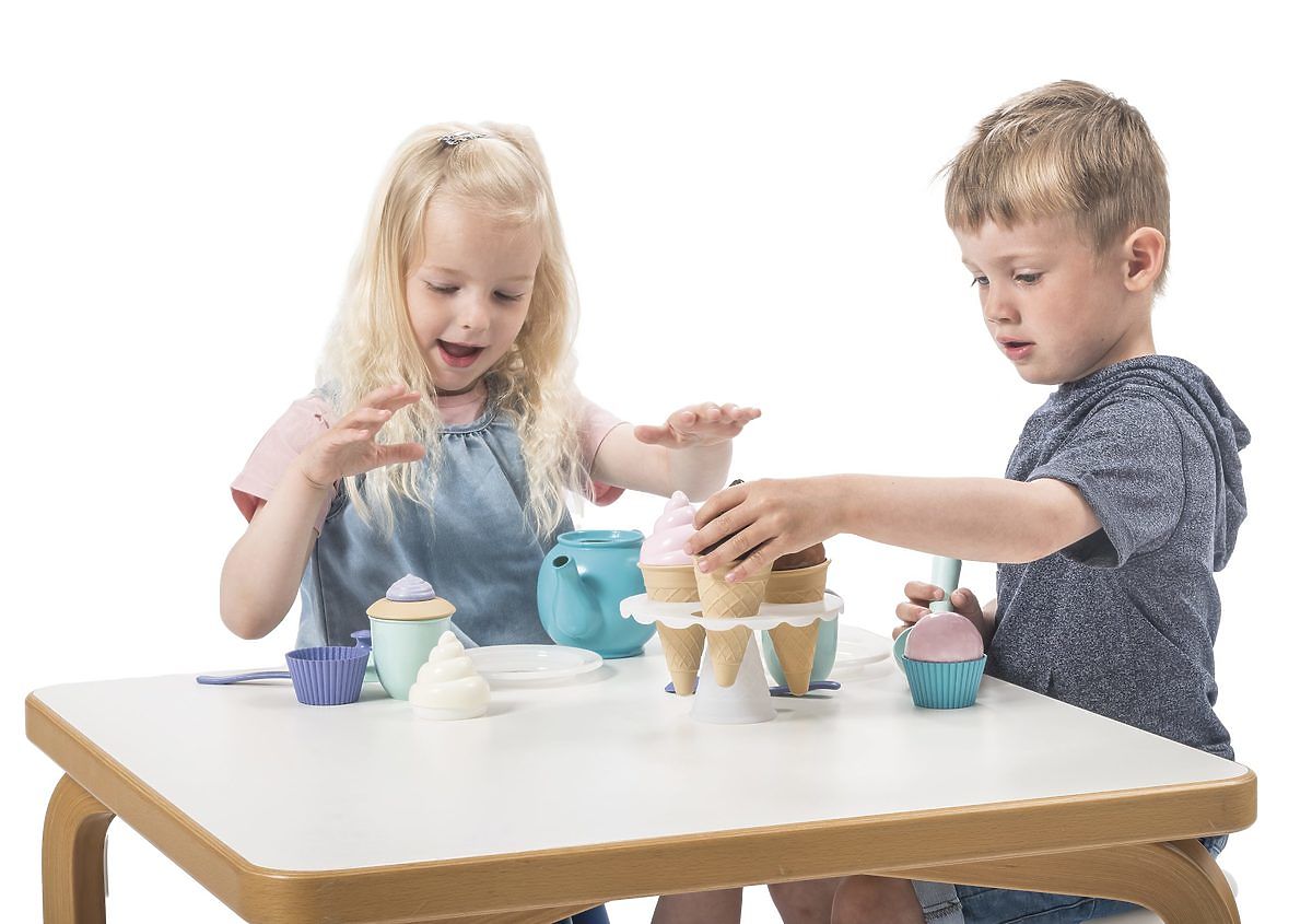 Egy gyönyörű , műanyagból készült fagylaltkészlet északi ökocímkével . A készlet fagylalttölcsért, fagylaltkanalat és egyéb gyönyörű kiegészítőket tartalmaz a házi fagylalt készítéséhez. A sok lehetőségnek köszönhetően a fagylaltok széles választékát tálalhatja a mellékelt tartón. A készlet alkalmas beltéri, kültéri és hóban való játékra. A készlethez tartozik egy szép kifestőkönyv is, ahol kiszínezheted a varázslatos világot.