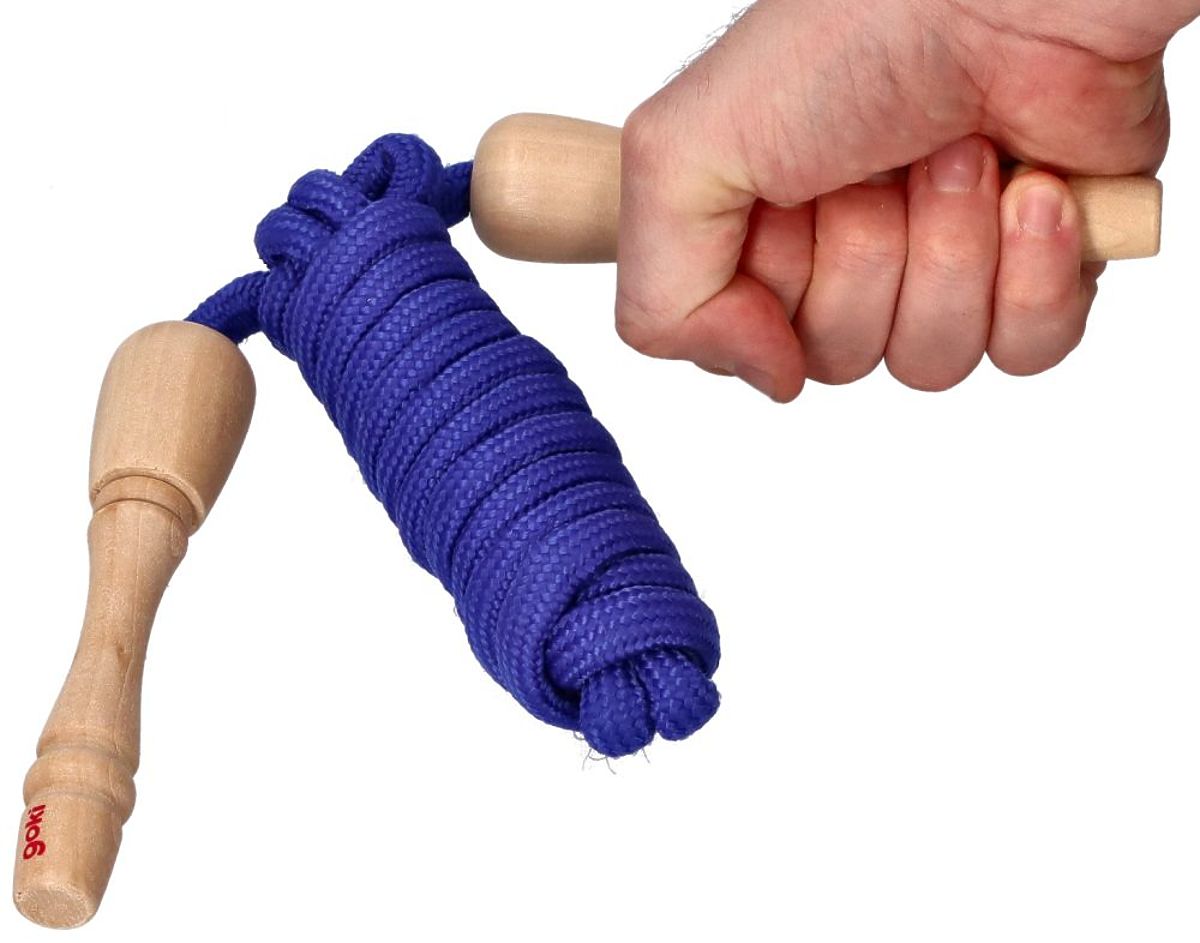 A kötél tömör, lakkozott fából készült fogantyúkkal készül.
