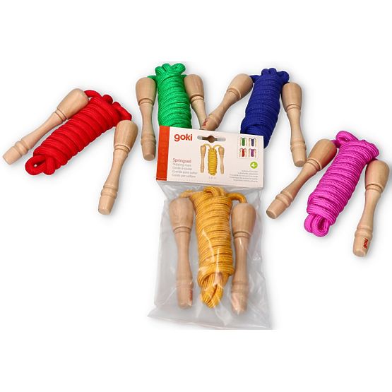A színes, fa fogantyús ugrókötelek vidám mozgásra ösztönzik a gyermeket, fejlesztik kézügyességét, állóképességét és fittségét.