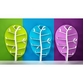 A fa polcok szép, élénk színűek és csavarokkal lehet a falra rögzíteni. A csavarok rejtettek, így nem zavarják meg a összhatást. A díszítő falevelek alatt vannak elrejtve.