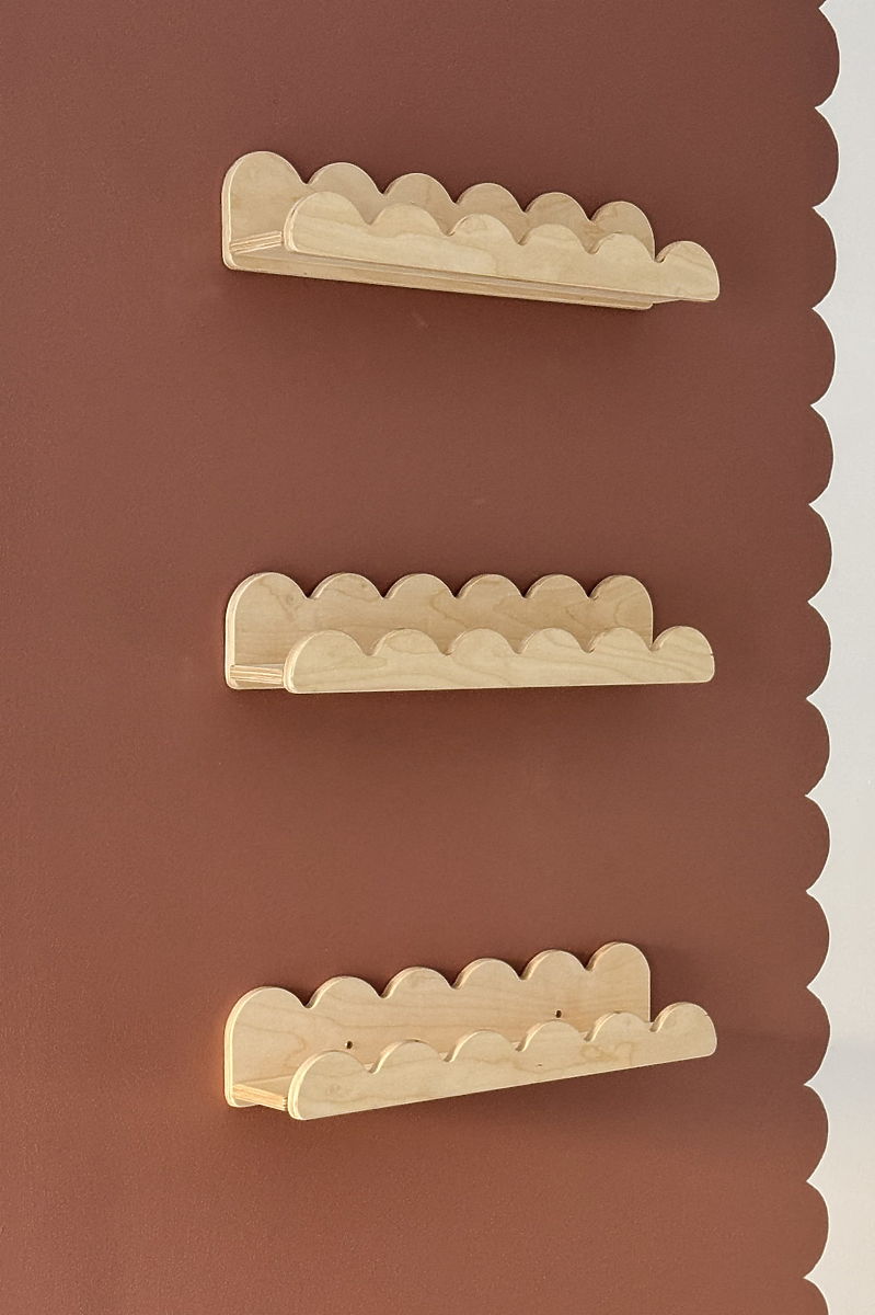 Természetes színű, mozgatható fodros WAVE polc gyerekszobába. .. többet