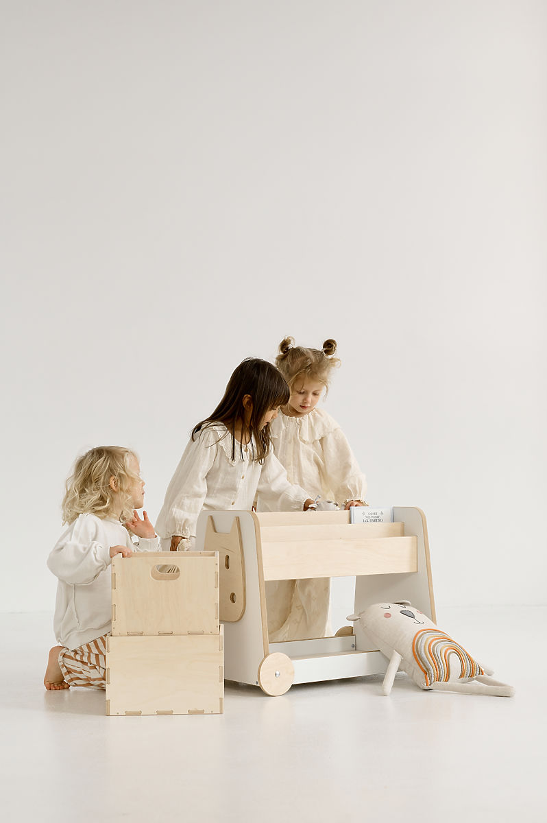 Banaby.hu » Könyvespolcok, polcos elemek és polcok / Polcos elemek gyerekeknek / Fa fából készült polc kerekeken