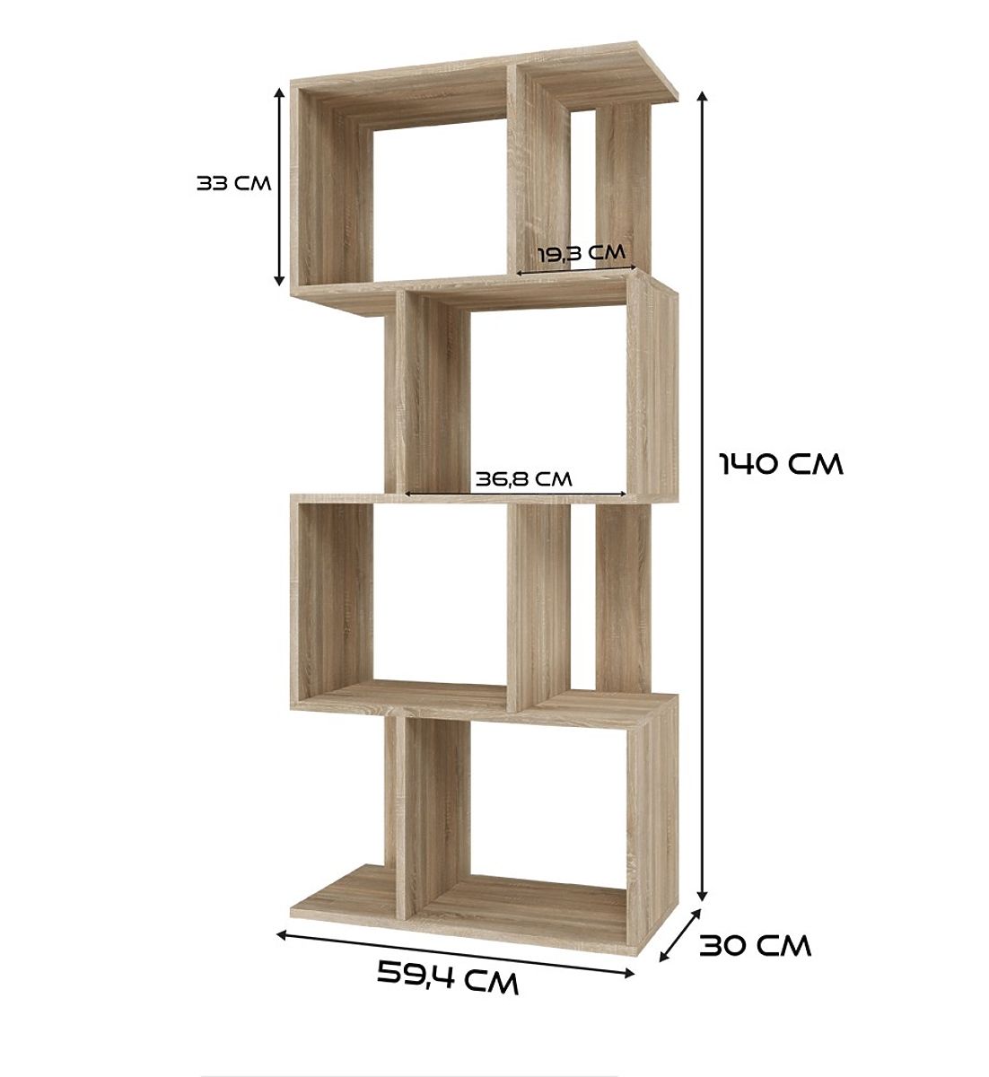 Modern nyitott, moduláris polc könyvekhez és dekorációkhoz. .. többet