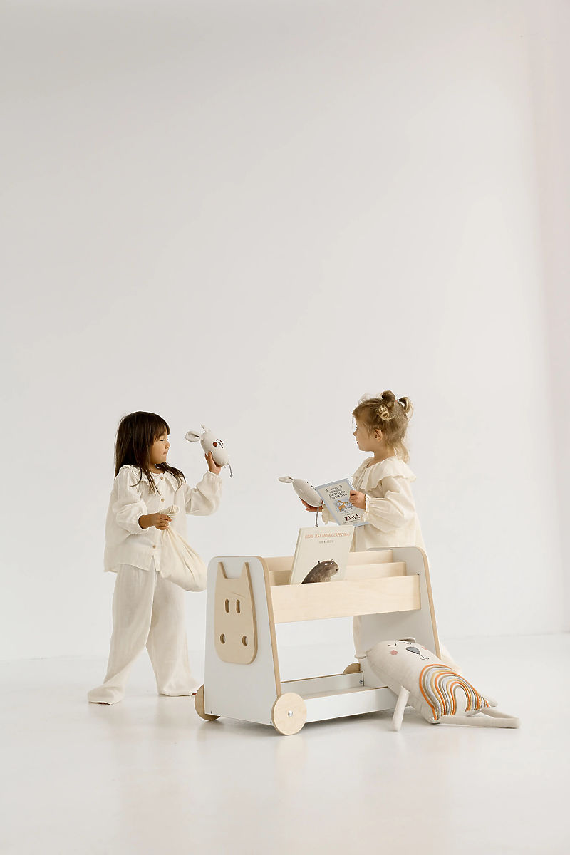 Fa játék tároló polc kerekekkel praktikus és funkcionális kiegészítő a gyerekszobába. A négy keréknek köszönhetően könnyen mozgatható erőfeszítés nélkül, akár a gyermek által is. A kétoldalas kialakítás lehetővé teszi a könyvek és játékok kényelmes elérését mindkét oldalról, ami támogatja a gyerekek önállóságát a játék és a rendrakás során. A polc bőséges tárolóhelyet kínál könyvek, játékok és kedvenc játékok számára, és segít rendet tartani a gyerekszobában. A gyermek természetesen tanulja meg a szervezést és a dolgok helyére rakását.