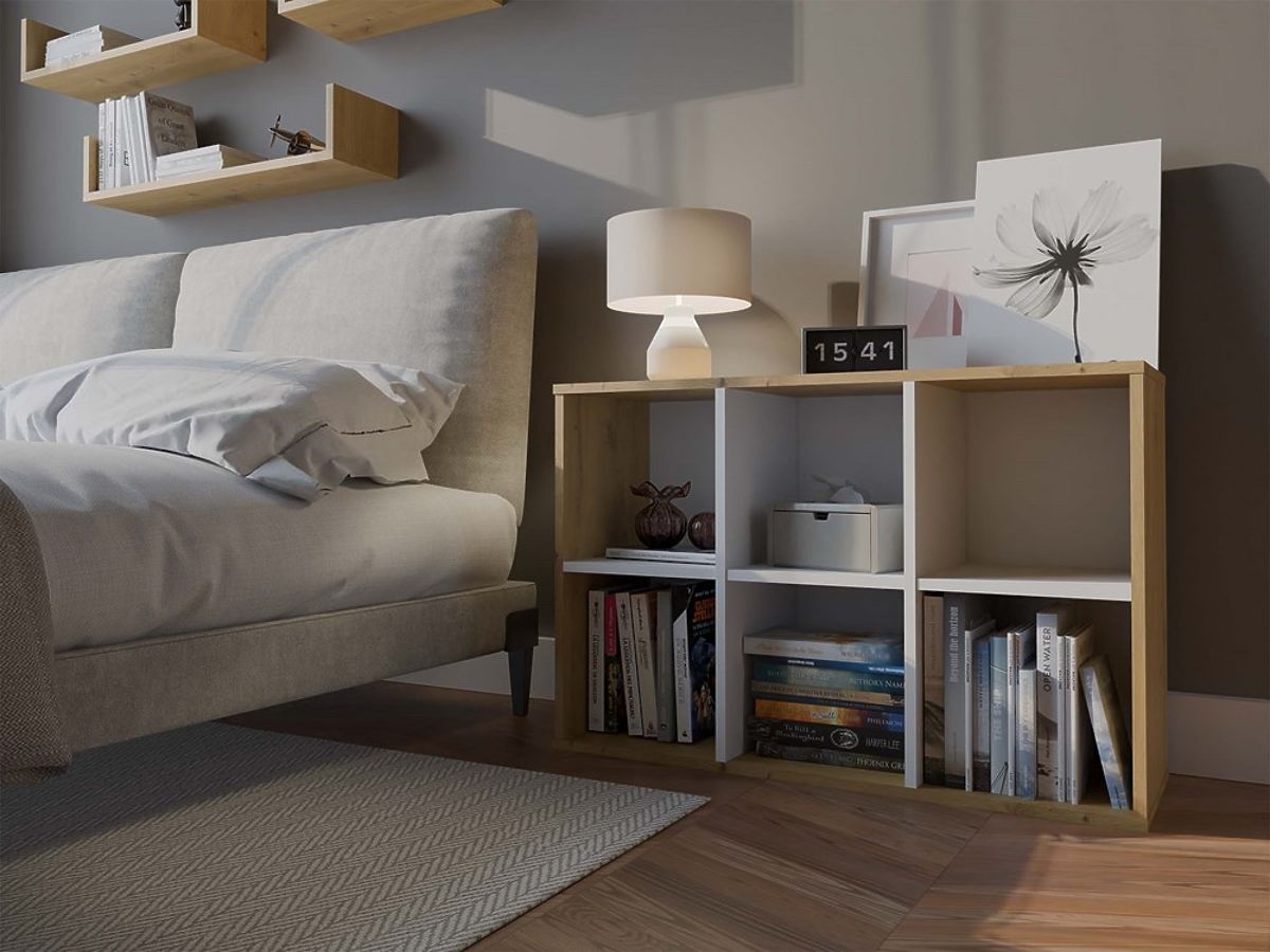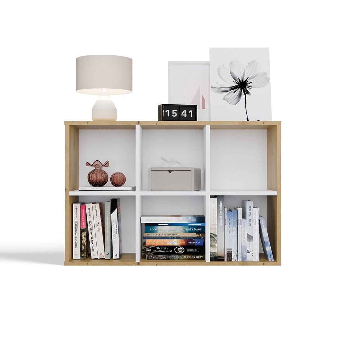 A MALAX MINI 2X3 polc elegáns és funkcionális megoldást kínál könyvek, játékok, dokumentumok és dekorációk tárolására. Nyitott kialakítása könnyű hozzáférést biztosít a tárolt tárgyakhoz, modern stílusa pedig tökéletesen illeszkedik az iroda, nappali vagy diákszoba belső terébe.
