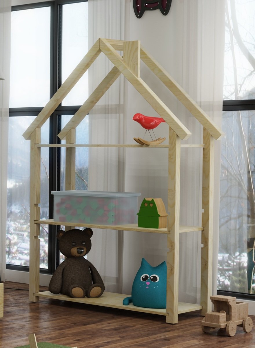Banaby.hu » Könyvespolcok, polcos elemek és polcok / Polcos elemek gyerekeknek / FRANK házikó alakú polcos állvány - természetes