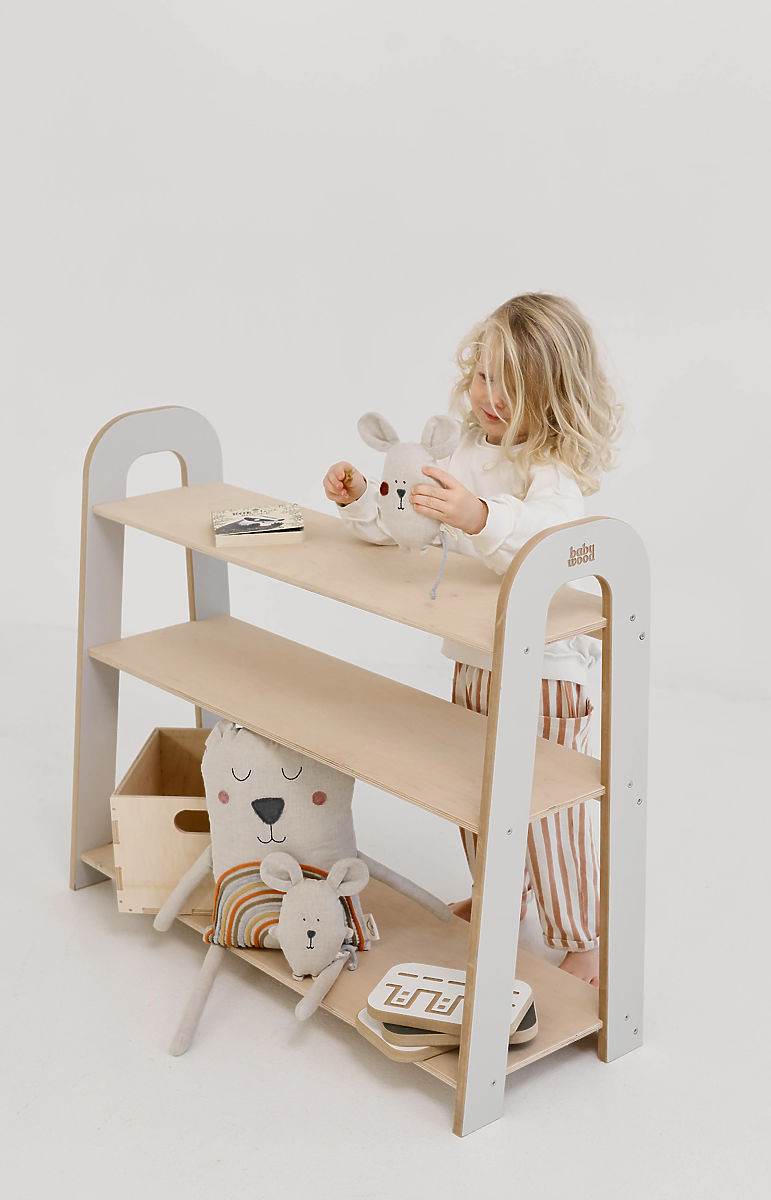 Nyitott polc gyerekeknek, három széles polccal. .. többet