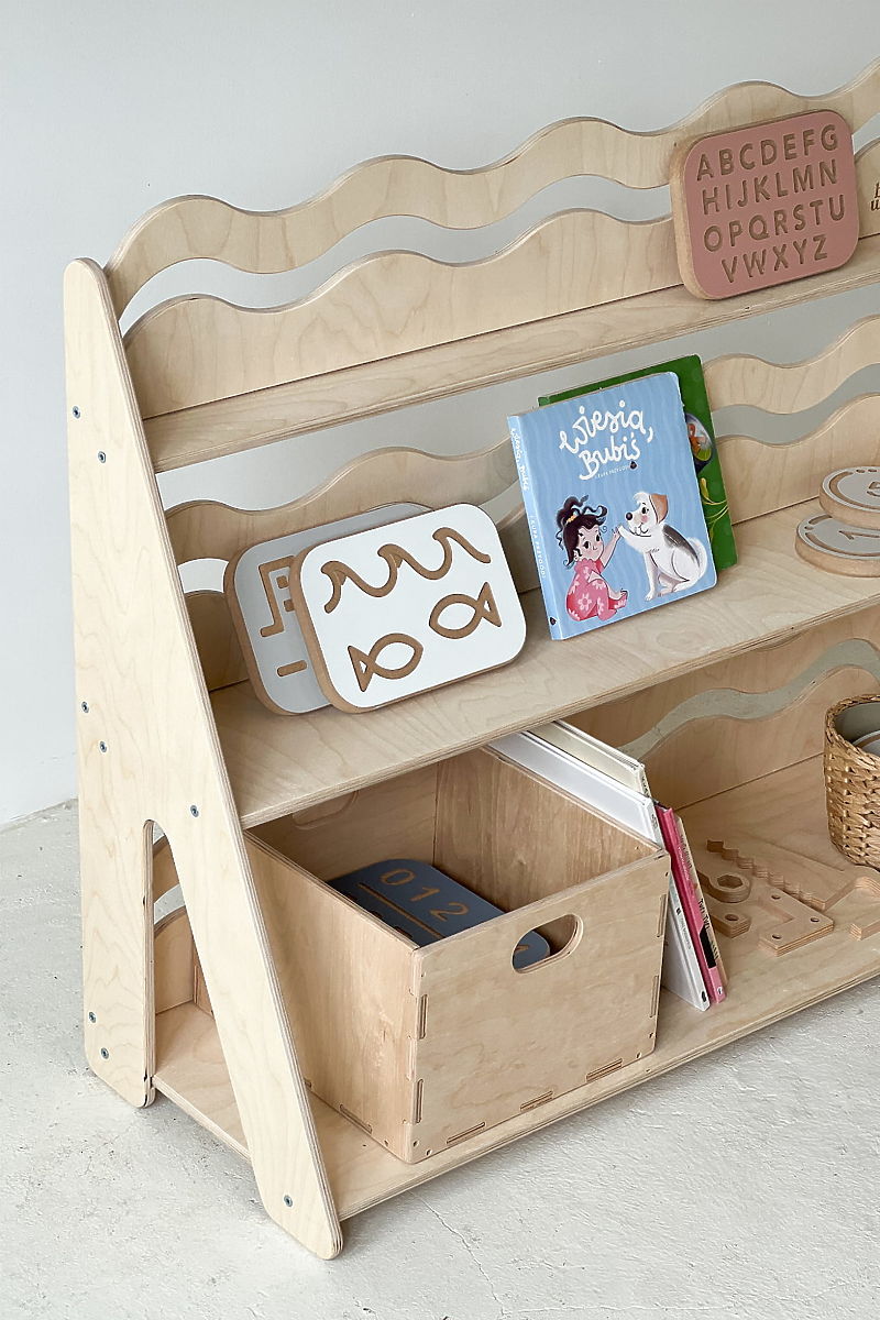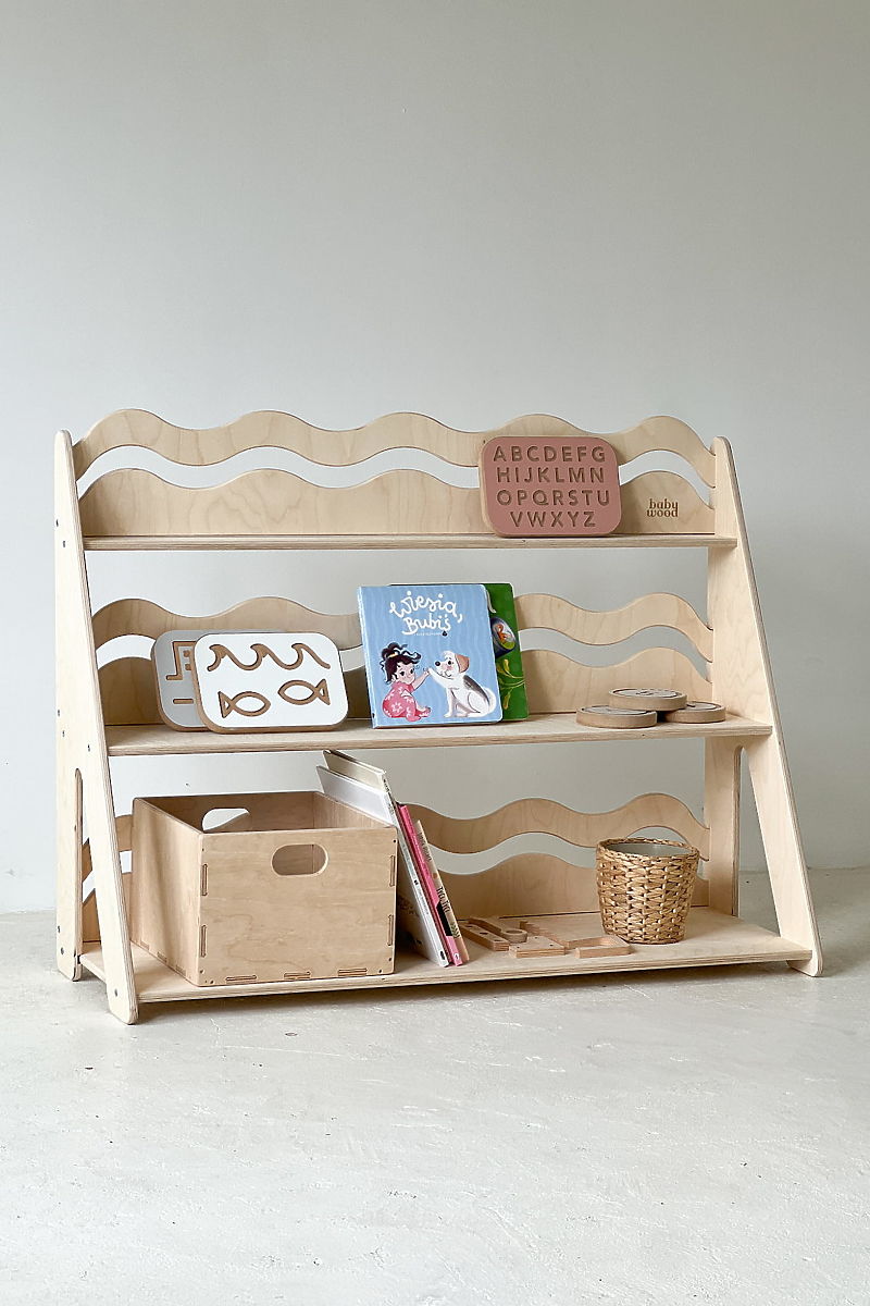 A WAVE L polc természetes színben egy praktikus és dekoratív könyvtár, amely segít rendet tartani a gyerekszobában, miközben támogatja a gyermek önállóságát. Az átlátható polcoknak köszönhetően a gyermek könnyen hozzáférhet a könyvekhez, játékokhoz és apró tárgyakhoz. A 4 cm mély polcok ideálisak kisebb könyvek és dekorációk számára, míg a hullámos elülső lécek finom dizájnelemet adnak a polcnak. Stabil anyagok és biztonságos kivitelezés biztosítják a hosszú élettartamot és a biztonságos használatot még kisgyermekek számára is.