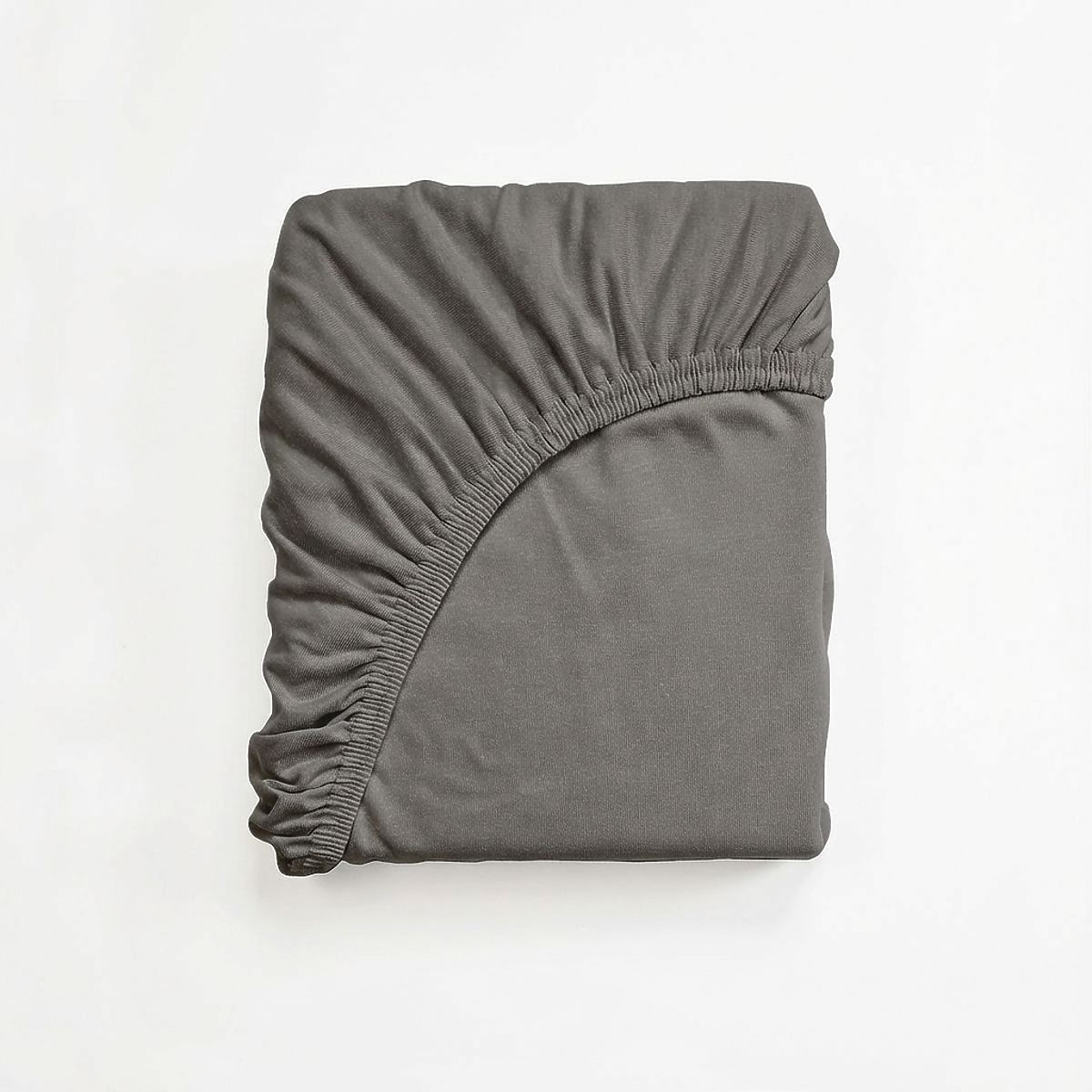 Sötétszürke pamut lepedő, amely puha tapintású és gumis szegéllyel rendelkezik. .. többet