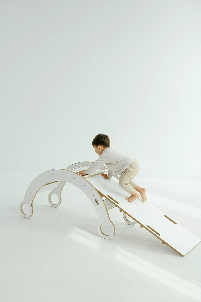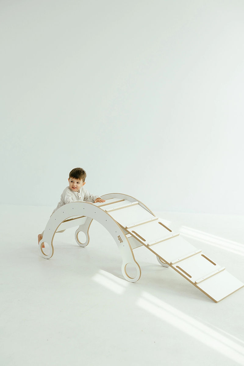 Montessori hintaszék csúszdával és létrával, fehér színben. .. többet
